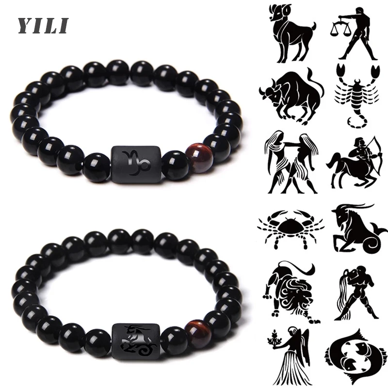 12 созвездий, натуральный черный оникс, браслет из бисера, Звездный знак, созвездия, зооскоп, браслет для пар, дружба, ювелирные изделия, подарки