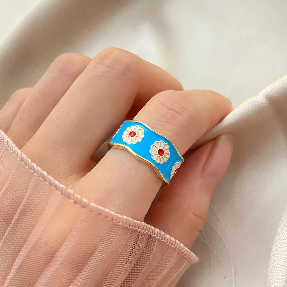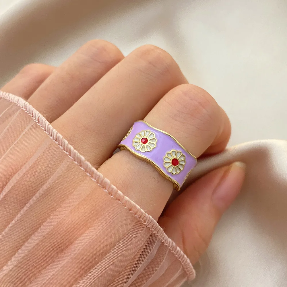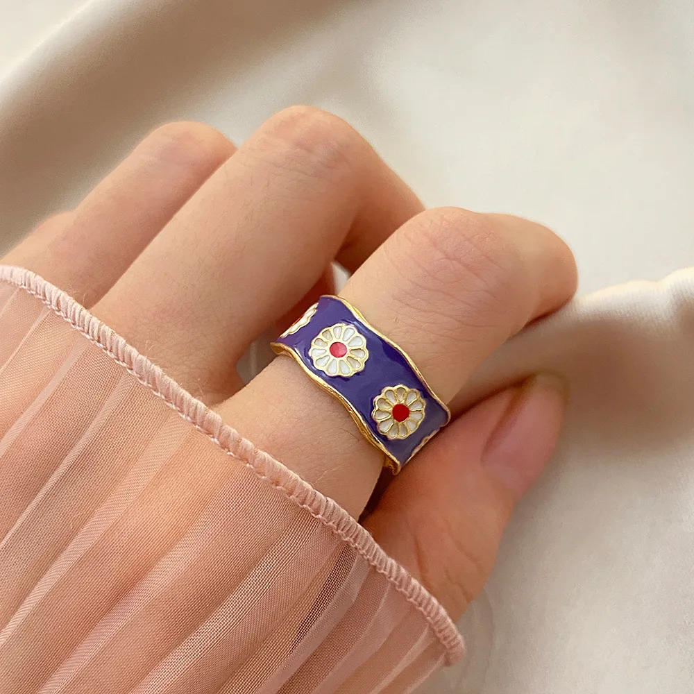 Женское кольцо с цветком сливы, маленькое эмалированное кольцо в стиле панк