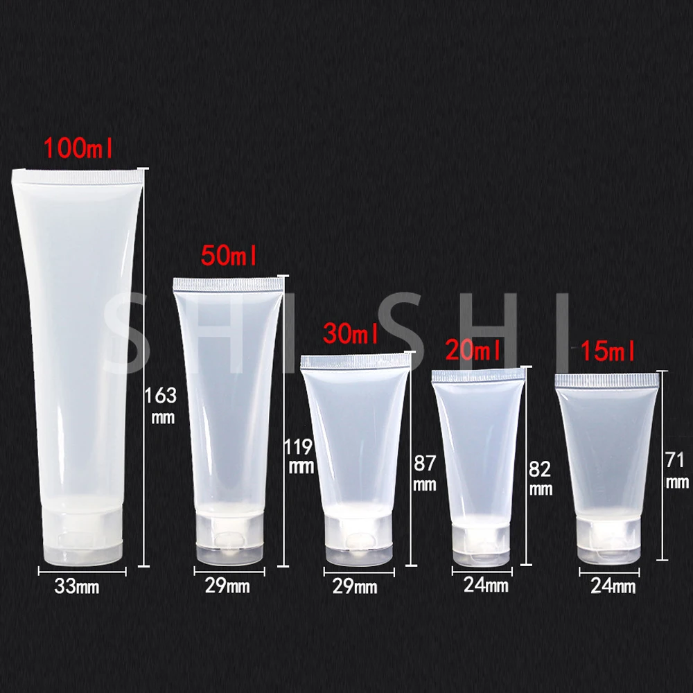 5 шт. пустые пластиковые сжимаемые трубки, прозрачные косметические контейнеры, многоразовая пластиковая дорожная бутылка 15 мл 20 мл 30 мл 50 мл 100 мл