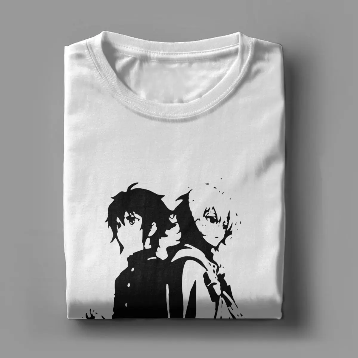 Забавные мужские футболки из чистого хлопка с принтом Yuu и Mika Owari No Seraph Of The End, японские футболки с короткими рукавами и Аниме Манга