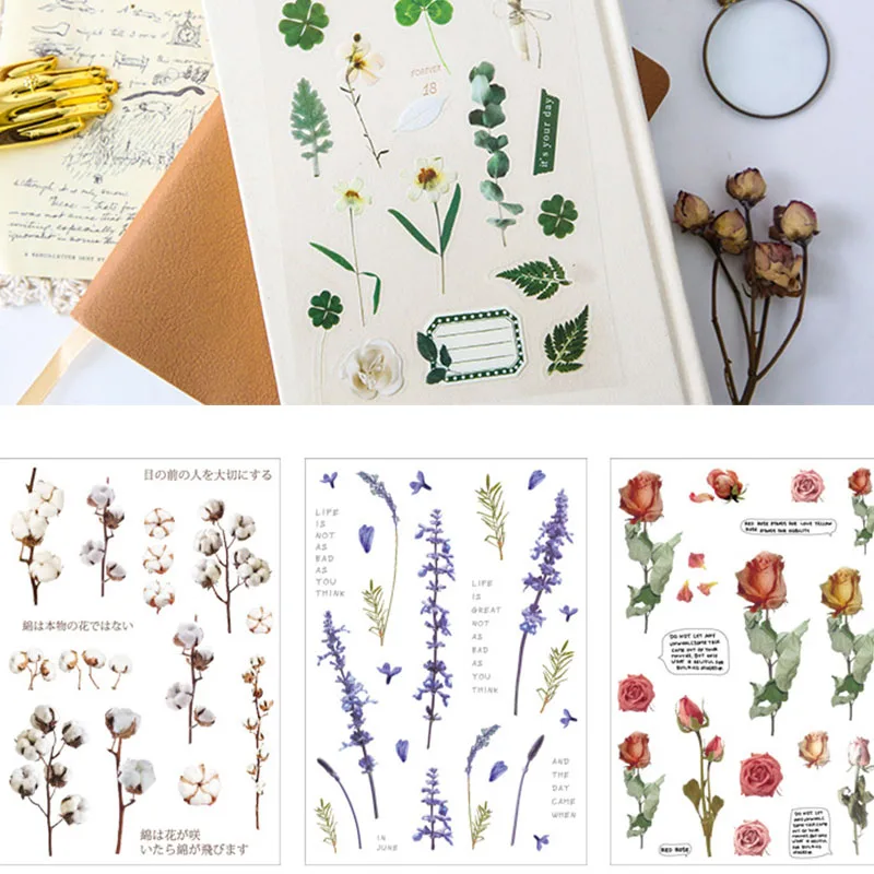 Свежий цветок растение PET бумажная наклейка декоративный дневник а...