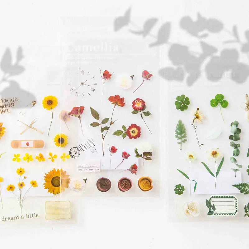 1 шт. натуральные японские наклейки со словами Маргаритка Клевер прозрачный материал для домашних животных цветы листья растения декоративные наклейки DIY Декор