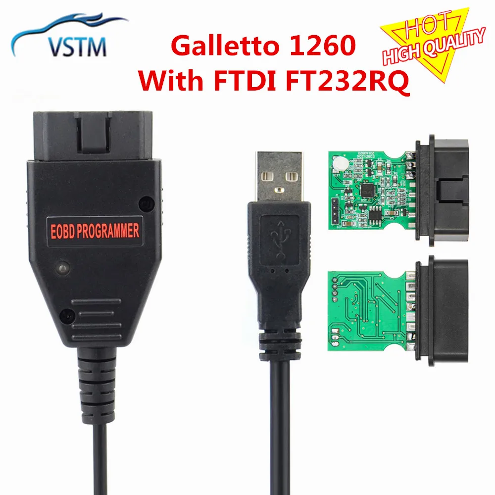 Автомобильный программатор OBD2 с интерфейсом для настройки ЭБУ, программатор EOBDII Galletto 1260, чтение и запись, ECU EOBD-1260 FT232RL, рабочий EDC1516
