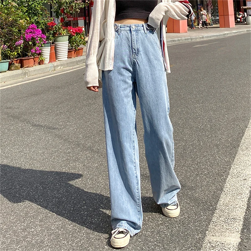 Женские джинсы с высоким хвостом, винтажная одежда из денима в стиле Харадзюку, голубого цвета, 2021