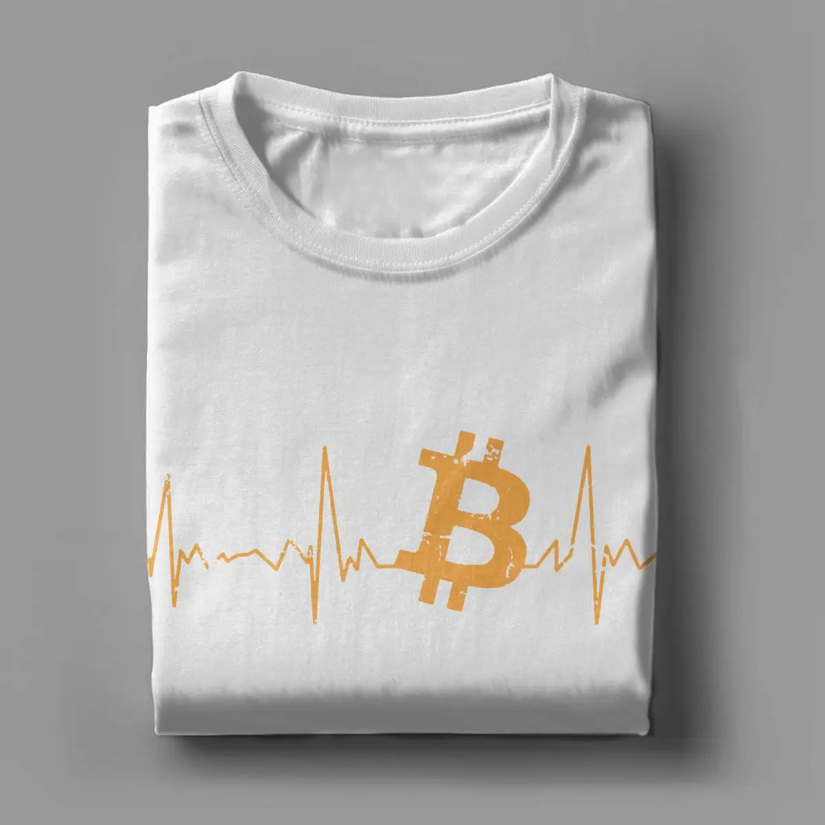 Мужские футболки, Винтажная футболка из чистого хлопка с рисунком биткоина сердцебиения криптовалюты, футболка с коротким рукавом и цепочкой