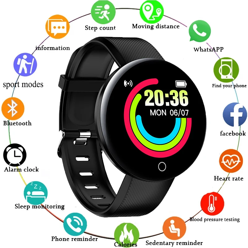 МодельNew Smart Bracelet D18 Fitness Tracker Bluetooth Smart Watch Men Women