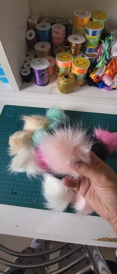 Помпон из искусственного меха, имитация меха лисы, 8 см, 12 шт.