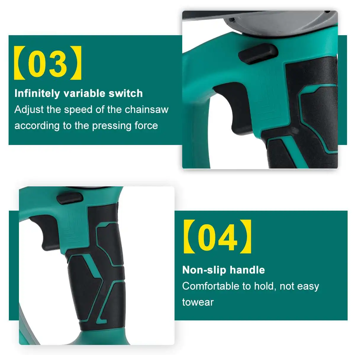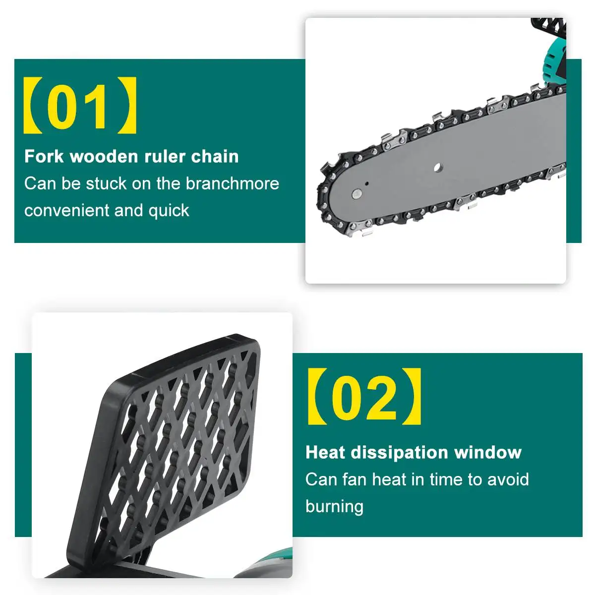 Особенности:-Для рубки и обрезки дерева.-Идеальный инструмент для вырубки отвечает различным потребностям во многих ситуациях.-Прочная и износостойкая закалённая цепь сэкономит ваше усилие на падении дерева.-Используйте отвертку для регулировки крепления цепи.-Подходит для аккумулятора 18 В/21 в