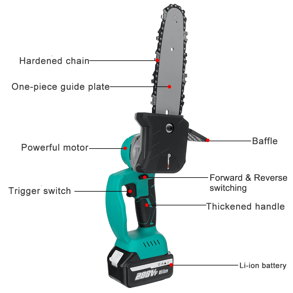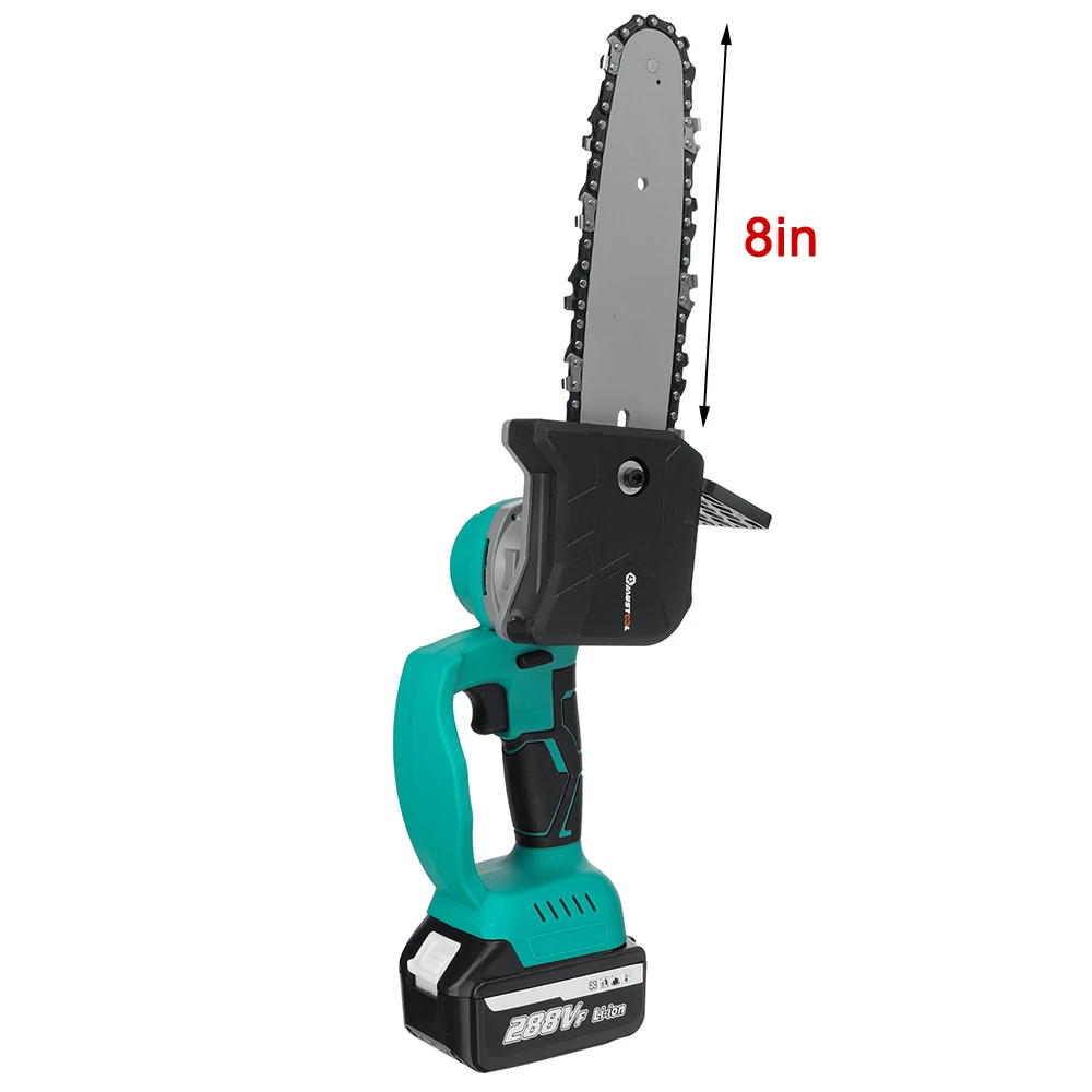 Характеристики:Тип: электрическая пилаЦвет: синийМатериал цепи: Высокоуглеродистая стальРазмер цепи: 8 дюймовАккумулятор: 288VF 22900 мАчМощность: 1500 Вт