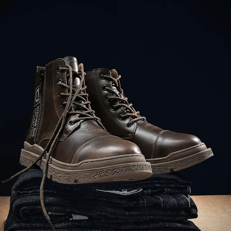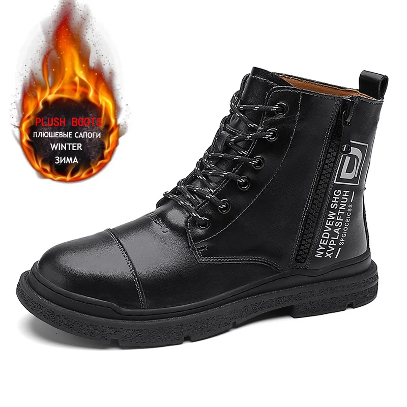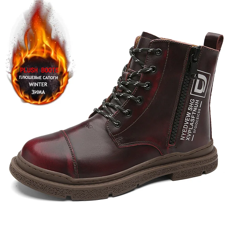 Зимние мужские ботинки, плюшевые теплые мужские зимние ботинки, мужские водонепроницаемые ботинки из натуральной кожи, оригинальные мотоциклетные ботинки ручной работы
