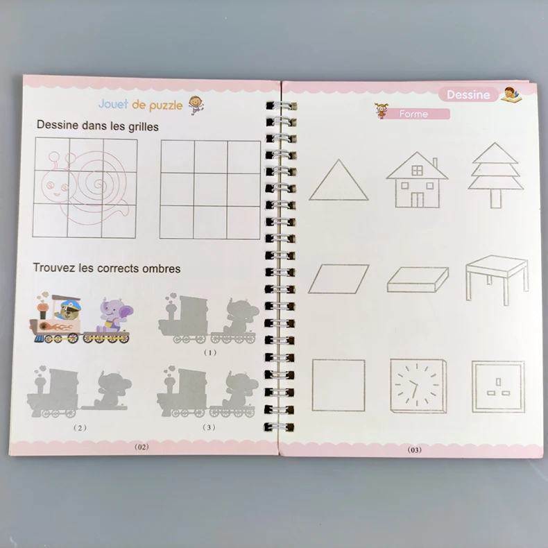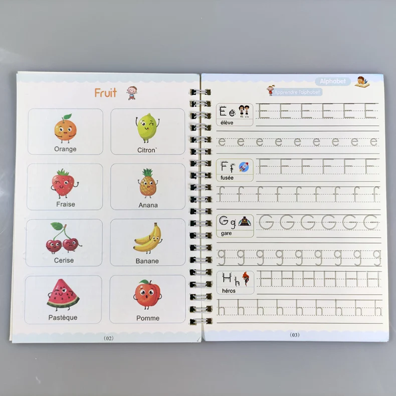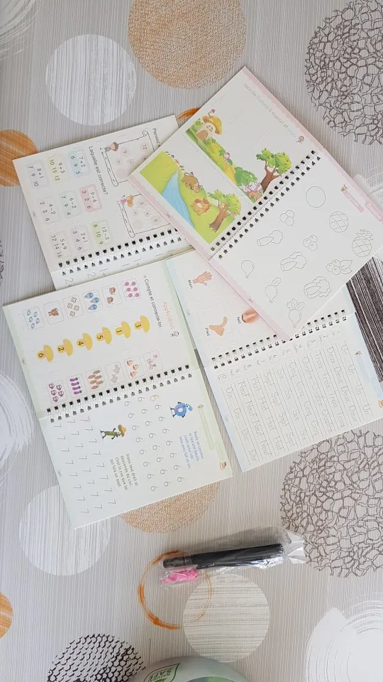 Отлично подходит для моей дочери, хорошо производится на французском языке. И качественный ноутбук. Чернила пачкаются довольно быстро, это позор, особенно когда ребенок занимает время, чтобы применить для воспроизведения рисунков, для цифр и букв это не мешает. Несколько стержней чернил продаются с ручкой и булавкой пальцев, чтобы научиться хорошо держать карандаш. Примечание продавцу: булавка для пальцев идеально подходит для правых, но моя дочь слева, она не подходит, это позор, потому что этот маленький предмет остается отличным для обучения.