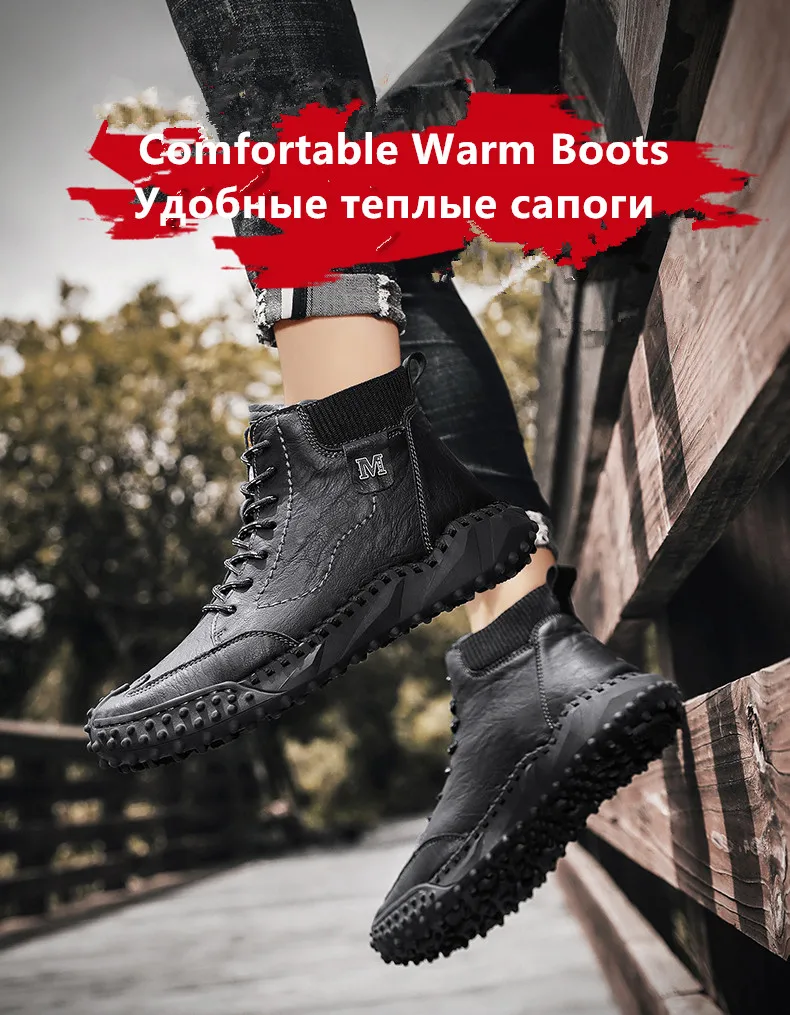 Классические мужские кожаные ботинки, плюшевая обувь, модные мягкие брендовые дышащие уличные рабочие ботинки, мотоциклетные ботинки