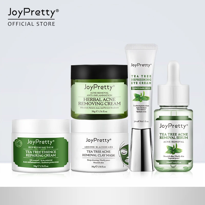 Бренд: JoyPrettyПосылка включает:1*20 мл чайное дерево освежающий крем для глаз1*30 мл Сыворотка для удаления акне чайного дерева1*50 г с травами против акне крем для удаления1*50 г тройник для удаления угревой сыпи глиняная маска1*50 г эссенция чайного дерева восстанавливающий крем