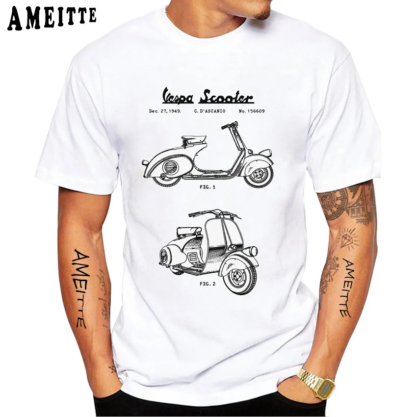 Футболка Vespa мужская с коротким рукавом, Классическая Ретро рубашка с итальянским скутером, художественный принт, Повседневный Белый Топ в стиле хип-хоп для мальчиков, винтажная одежда, лето
