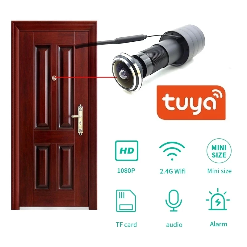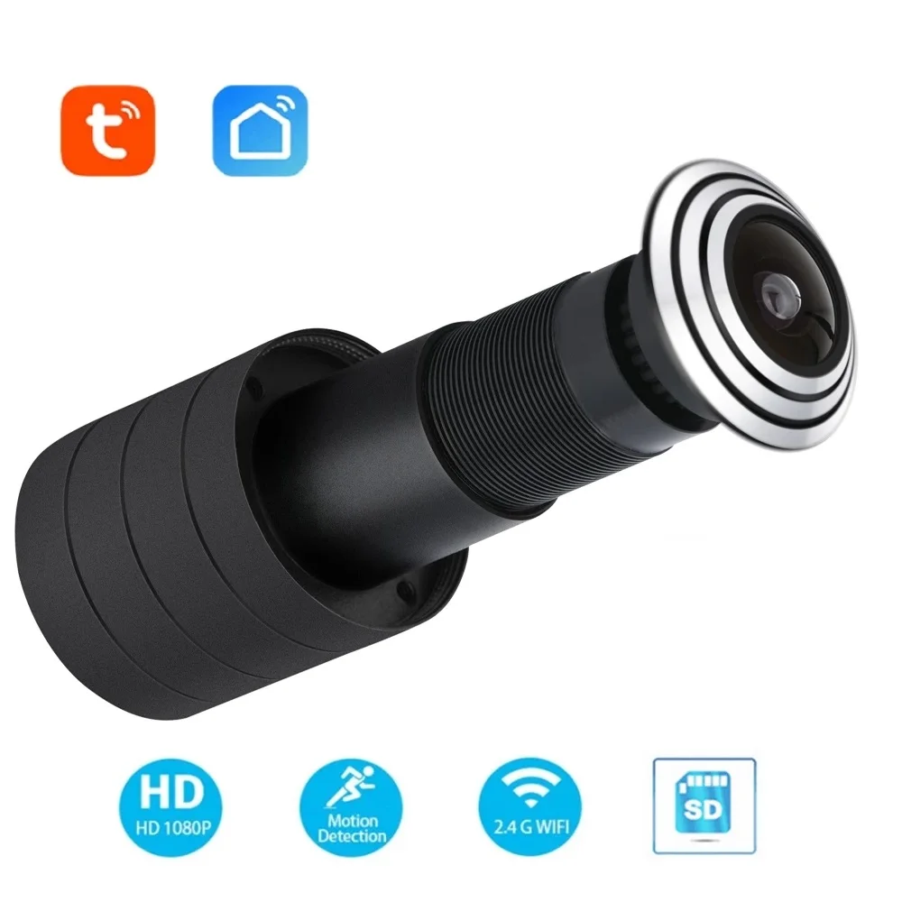 Умная камера видеонаблюдения Tuya, дверной глазок с Wi-Fi, широкоугольной камерой видеонаблюдения с функцией обнаружения движения, TF-карта, P2P
