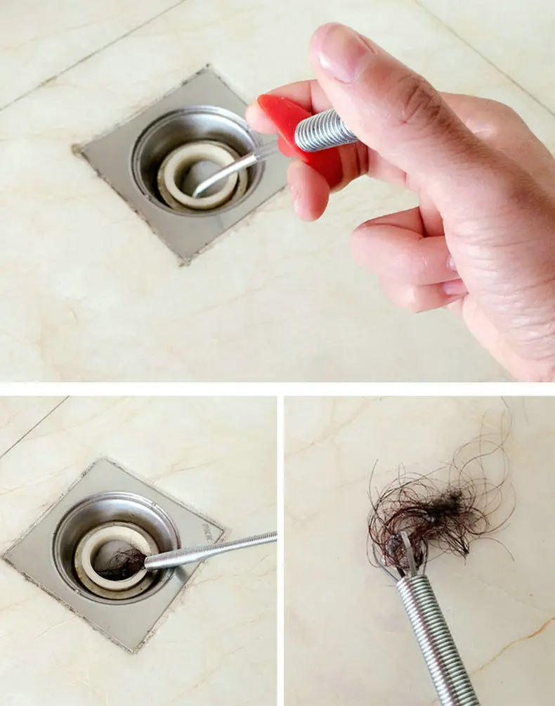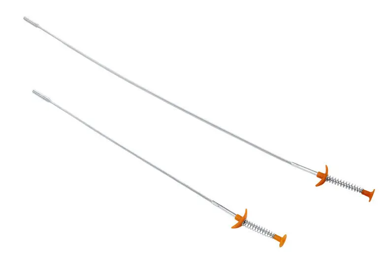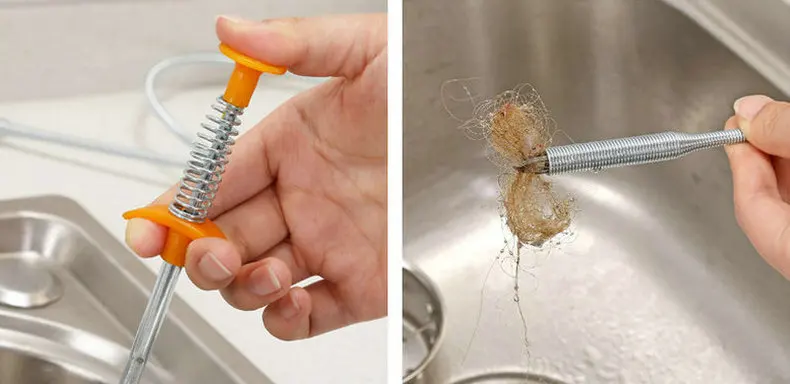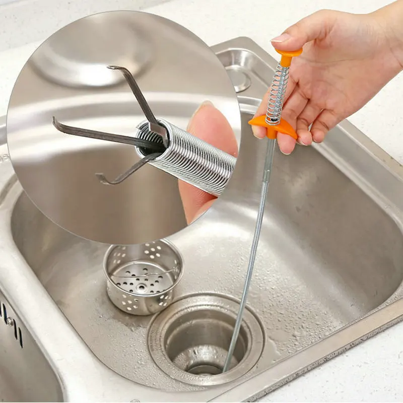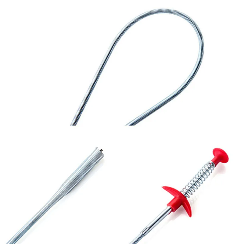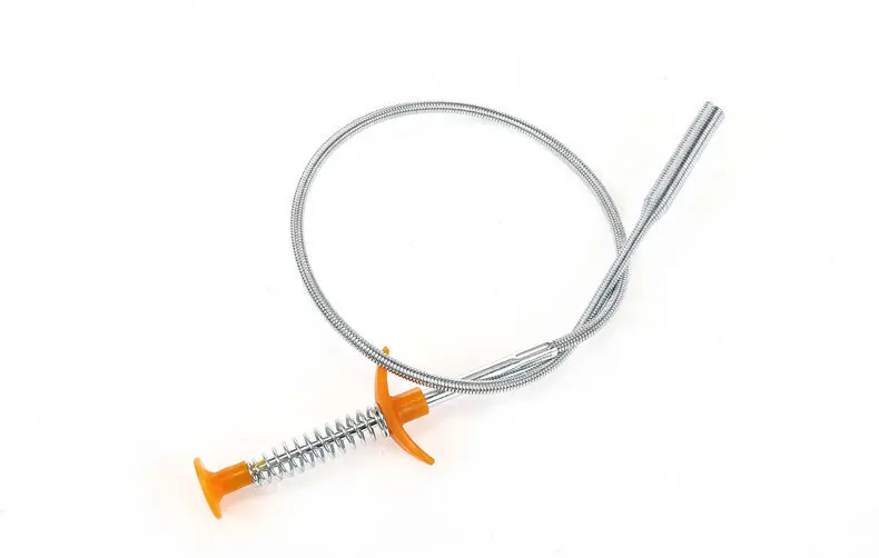 Он изготовлен из нержавеющей стали с пружинным дизайном, который мягкий и легко сгибается. Он может свободно сгибаться в трубе. Он имеет рукоятку, которая может лучше очистить блокировку