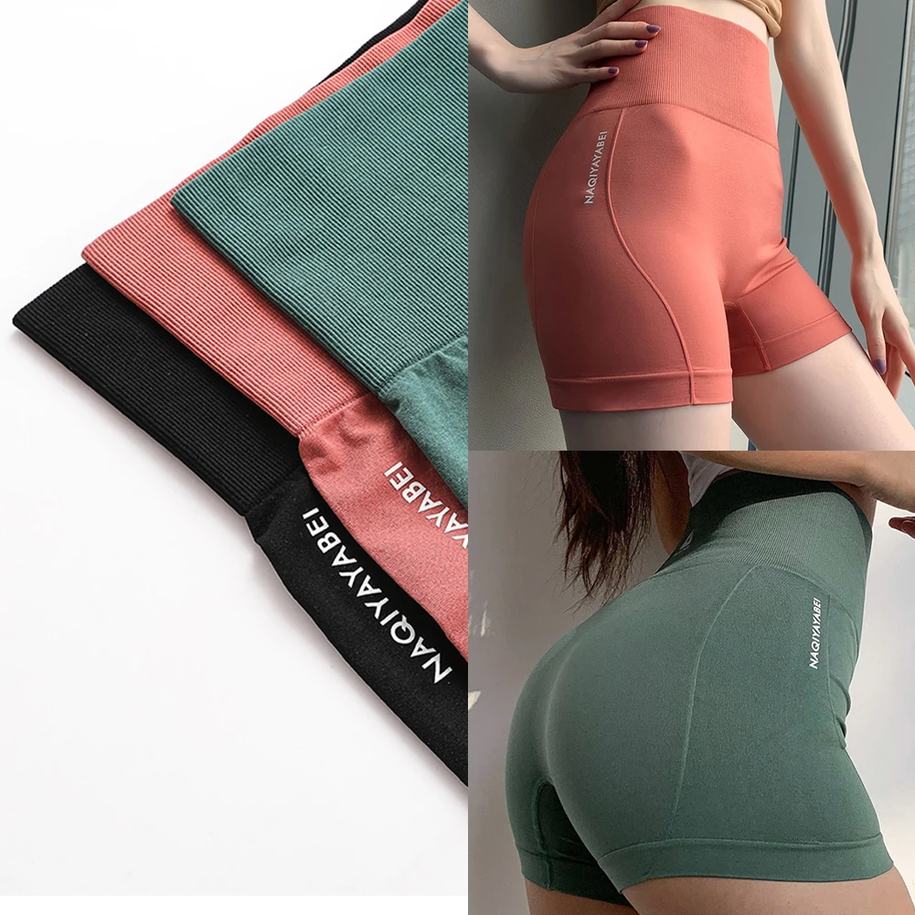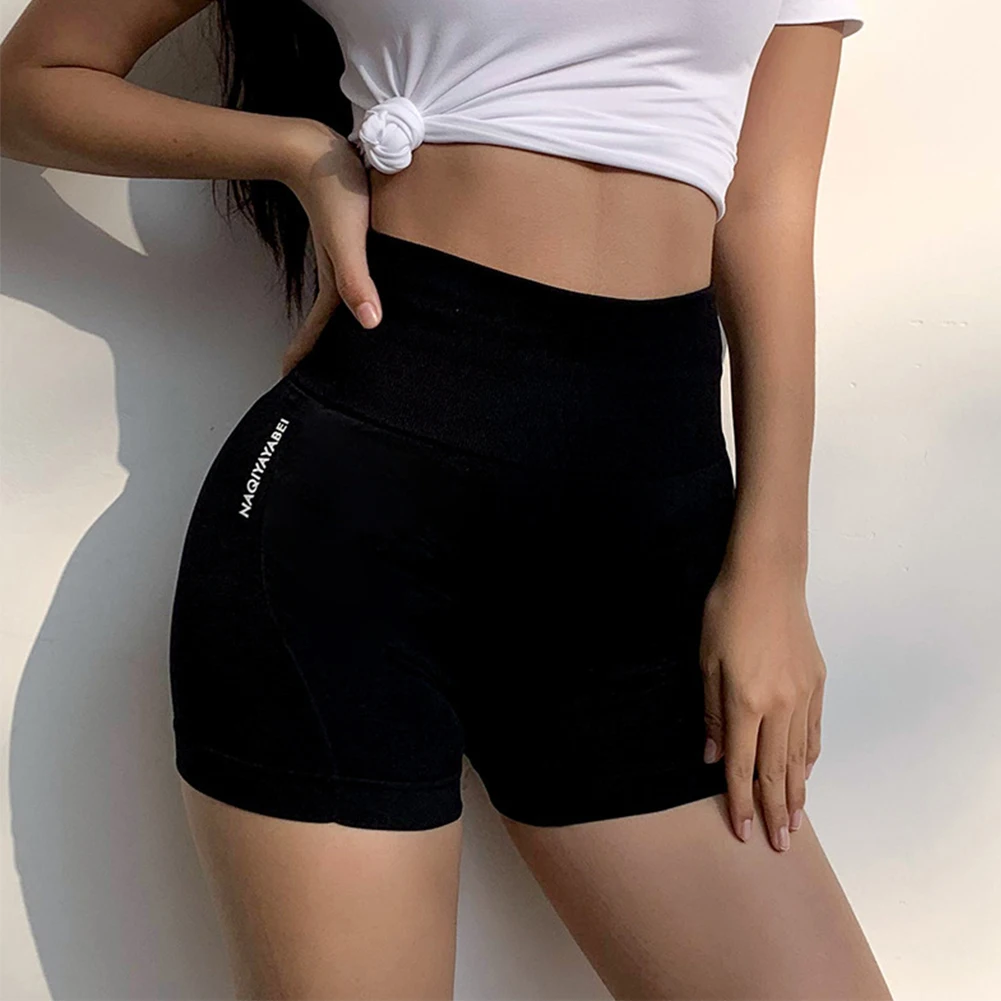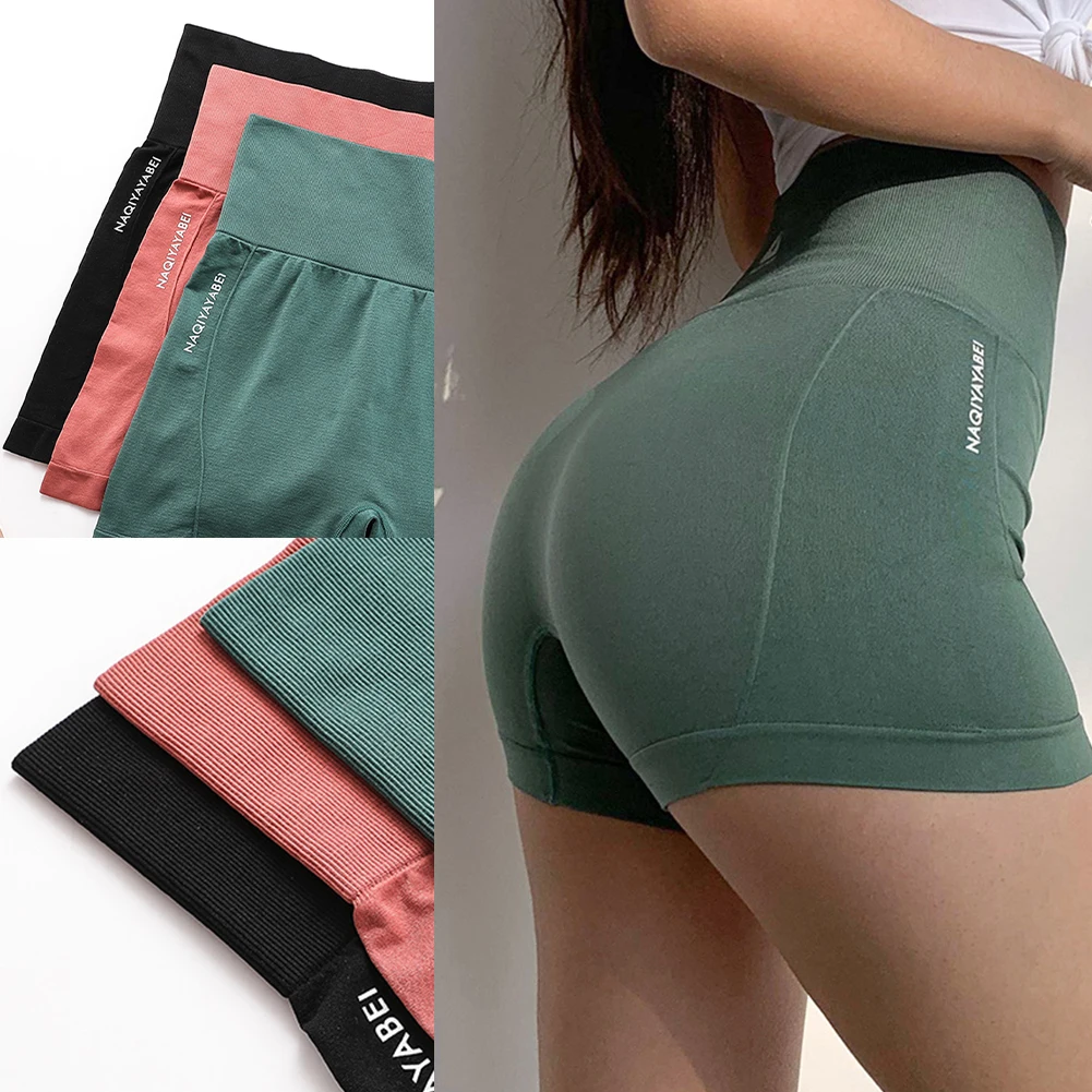 Шорты спортивные женские, бесшовные, до середины бедра, с высокой талией