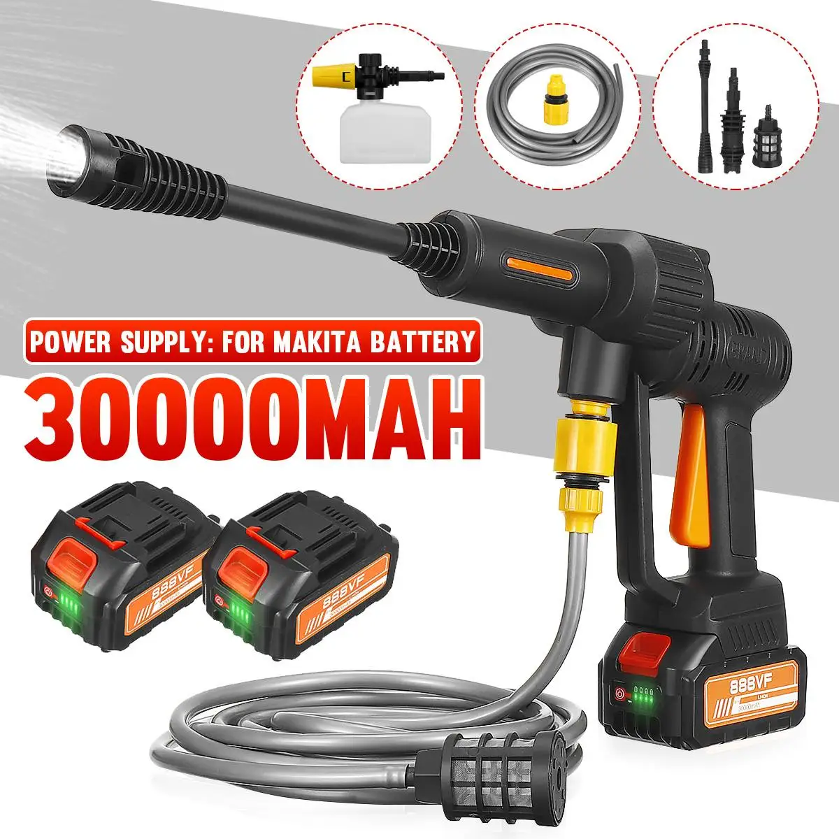 Беспроводной мойщик высокого давления для автомобиля, 30000 мАч, 2000 Вт, перезаряжаемый Электрический водяной пистолет для автомобиля, аккумулятор для Makita