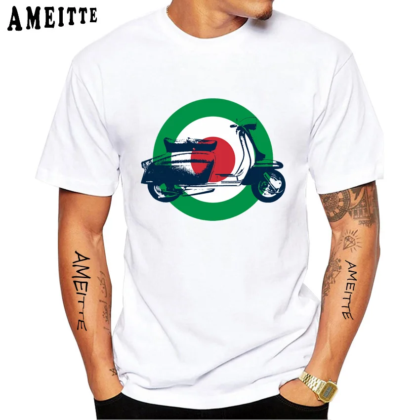 Винтажная классическая итальянская футболка Vespa Scooter Target, новые летние мужские повседневные белые топы с коротким рукавом в стиле хип-хоп для мальчиков, классные футболки в стиле Харадзюку
