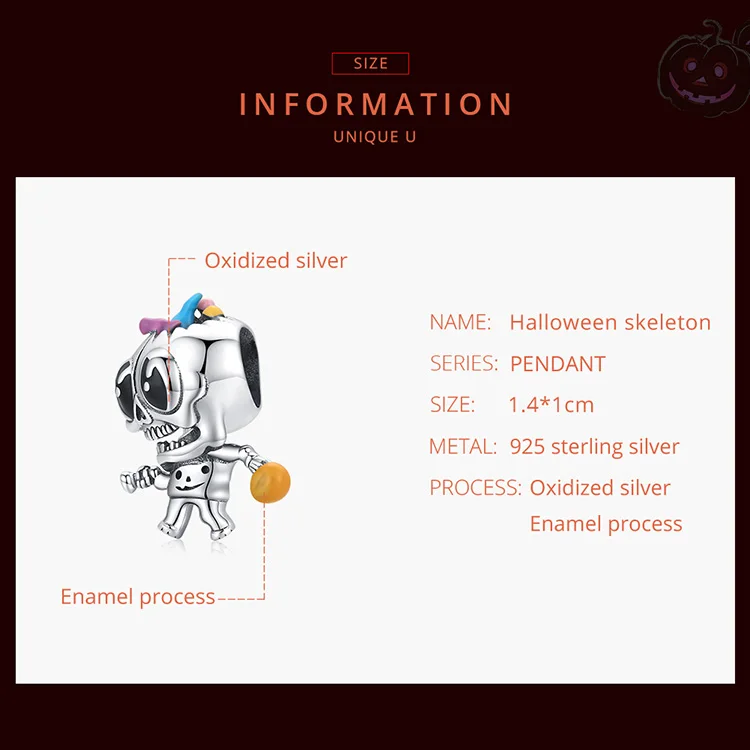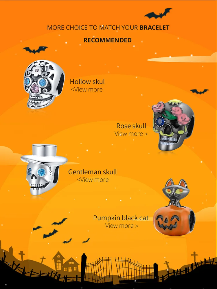 Бусины-шармы для браслета, серебристые, в виде тыквы