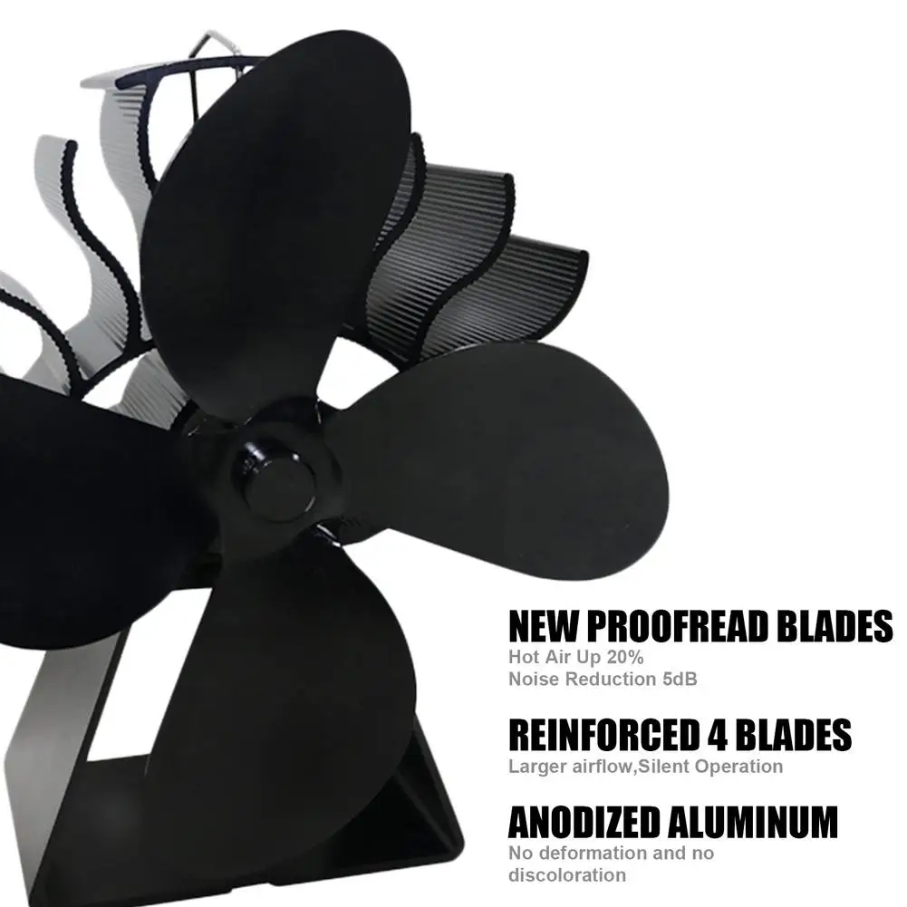 Энергосберегающая фотопечь вентилятор для камина 4 Blade вентилятор для печи, работающий от тепловой энергии, эффективное распределение тепла