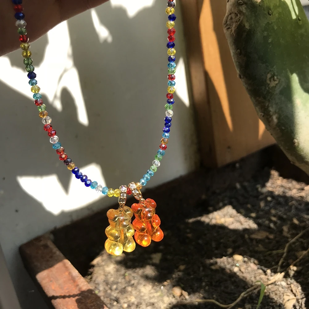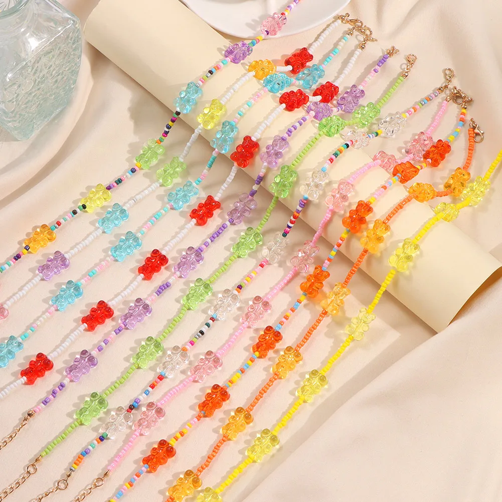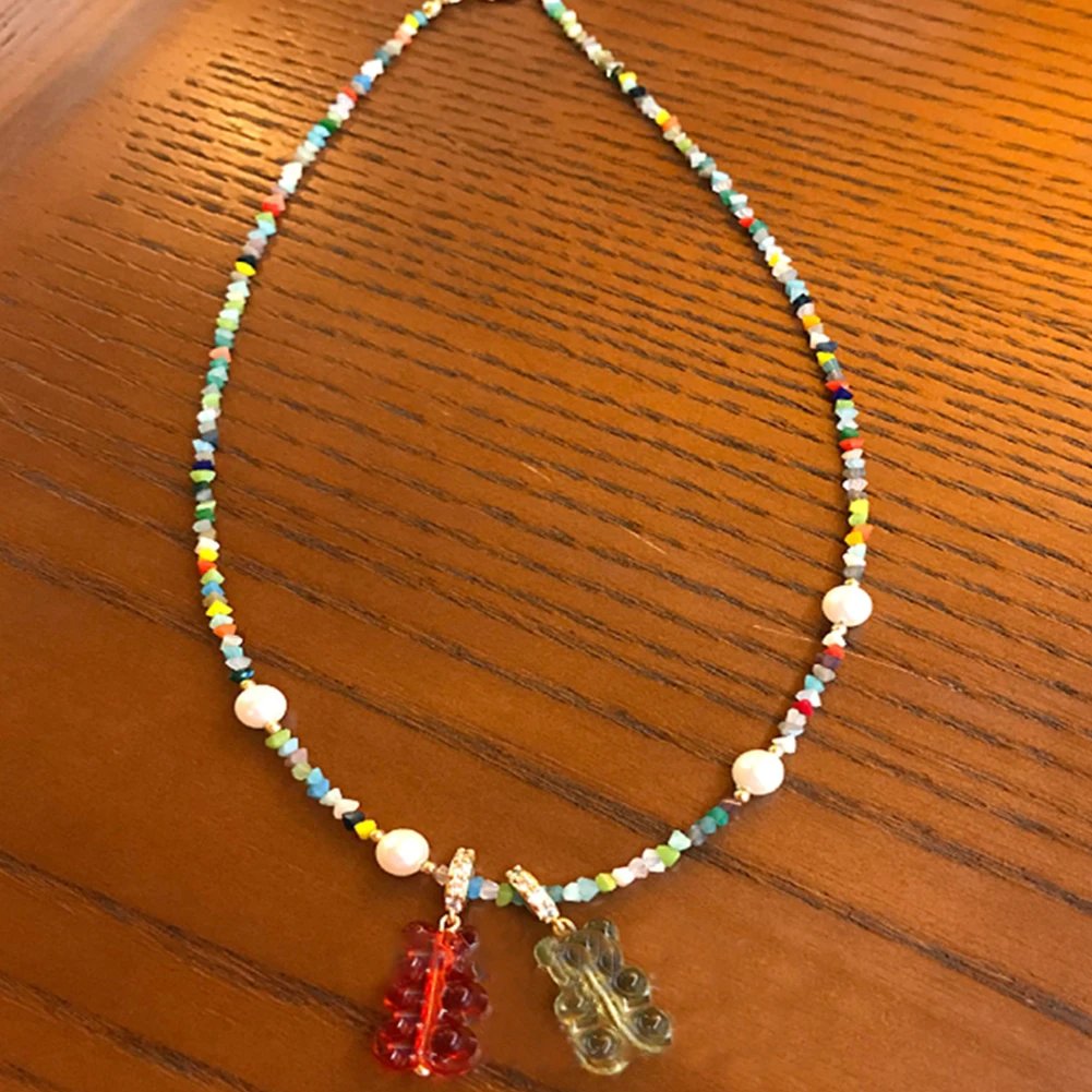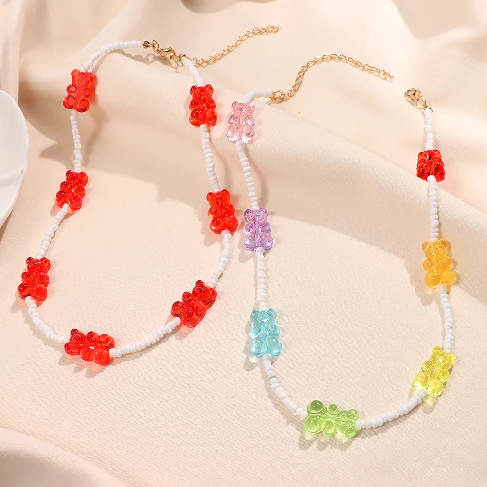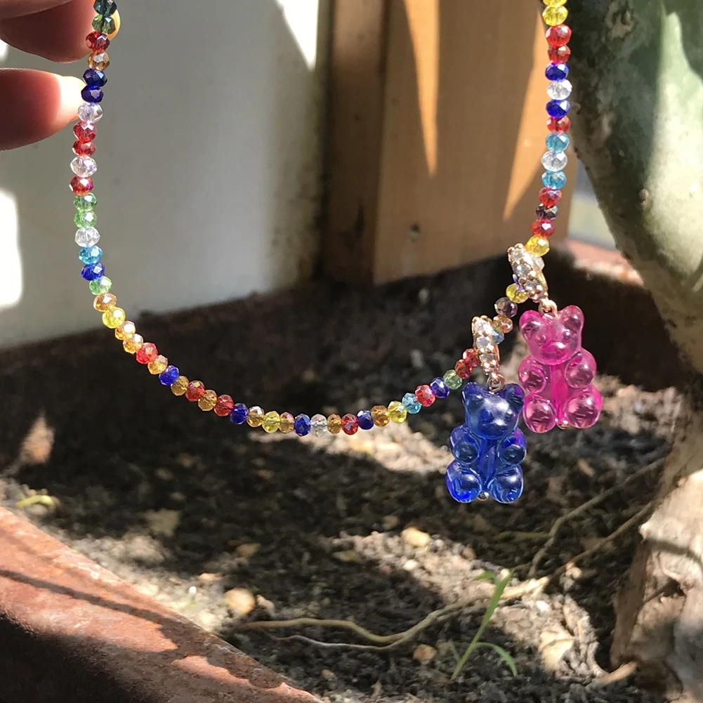 Милое ожерелье в стиле бохо из жемчужного медведя с кристаллами из циркония для женщин и девушек ожерелье из бисера конфетного цвета с медведем из смолы Радуга ожерелья из бисера ювелирные изделия
