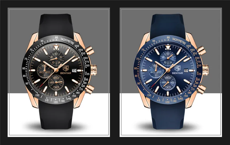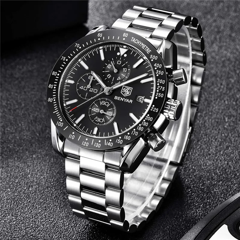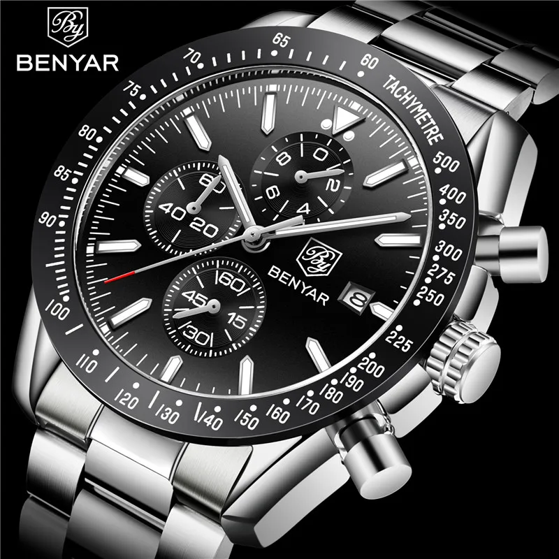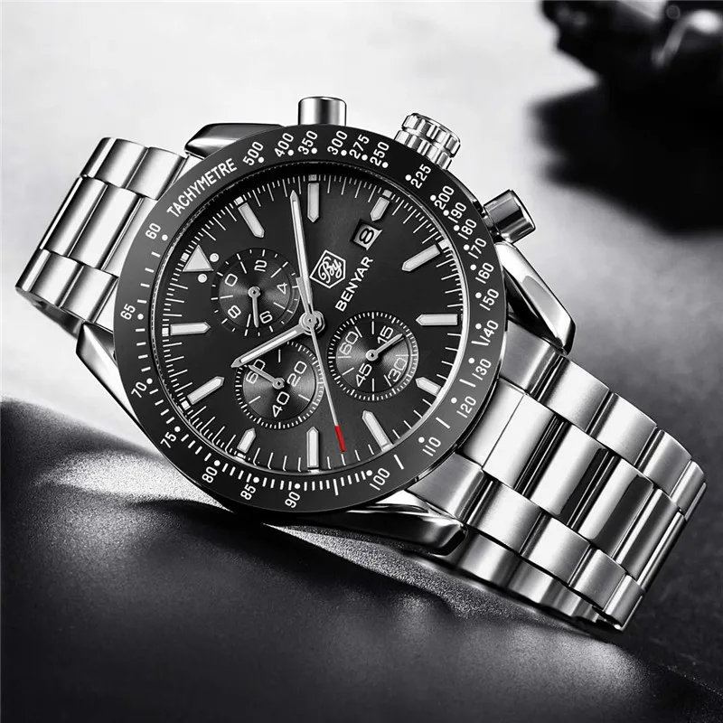 Часы BENYAR мужские с хронографом, водонепроницаемые, из нержавеющей стали