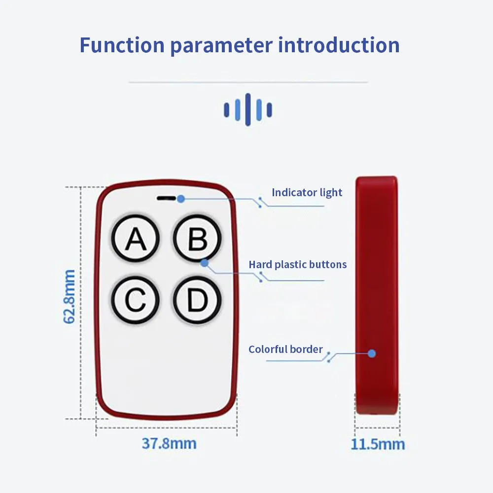 AK-K210605 белый корпус копии четырехкнопочный пульт дистанционного управления использует основной чип управления 12F683, поддерживает онлайн-программирование, можно многократно программировать, встроенный EEPROM, может копировать другие обычные пульты дистанционного управления с той же частотой, может очищать коды и изучать коды в любое время, прост в использовании, быстрый, может использоваться в автомобильном пульте дистанционного управления, Управление освещением, дистанционное управление умным домом и другие поля.Характеристики продукта(1) Рабочая частота: 433 МГц (специальная частота может быть настроена в соответствии с требованиями заказчика);(2) схема источника питания: 6 В постоянного тока (батарейка типа CR2016 * 2) Источник питания;(3) ток в режиме ожидания: менее 0,1 мА;(4) Диапазон температур: -20-70 ℃, может нормально работать даже при суровой температуре окружающей среды;(5) Размер продукта: 62,3*37,2*10,7 мм (включая корпус);(6) Вес продукта: 21,20 г (включая корпус).Описание функции(1) операция копирования кодаЕсли пульт дистанционного управления проверил код, код должен быть очищен, прежде чем код можно будет проверить. Операция сопоставления кода: одновременно нажмите одну кнопку на скопированном пульте дистанционного управления и на пульте дистанционного управления, до тех пор, пока светильник катор копирования пульта дистанционного управления не начнет мигать от быстрого до постоянного, указывая на успешное совпадение кода, вы можете отпустить две кнопки дистанционного управления. Остальные клавиши также работают последовательно в соответствии с этим способом до тех пор, пока не будут скопированы Все клавиши.(2) Очистка кодаНажмите и удерживайте две кнопки в верхней части пульта дистанционного управления (две кнопки возле светового Индикатора) одновременно, пока светильник катор не начнет быстро мигать, затем Коротко нажмите одну из двух кнопок сверху три раза, чтобы очистить код (Другая Кнопка нажимается во время этого процесса).(3) операция кода восстановленияОдновременно нажмите и удерживайте две кнопки на пульте управления копированием, пока индикатор не начнет быстро мигать. Вы можете восстановить код пульта, который был очищен ранее.