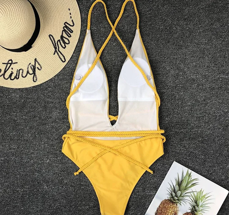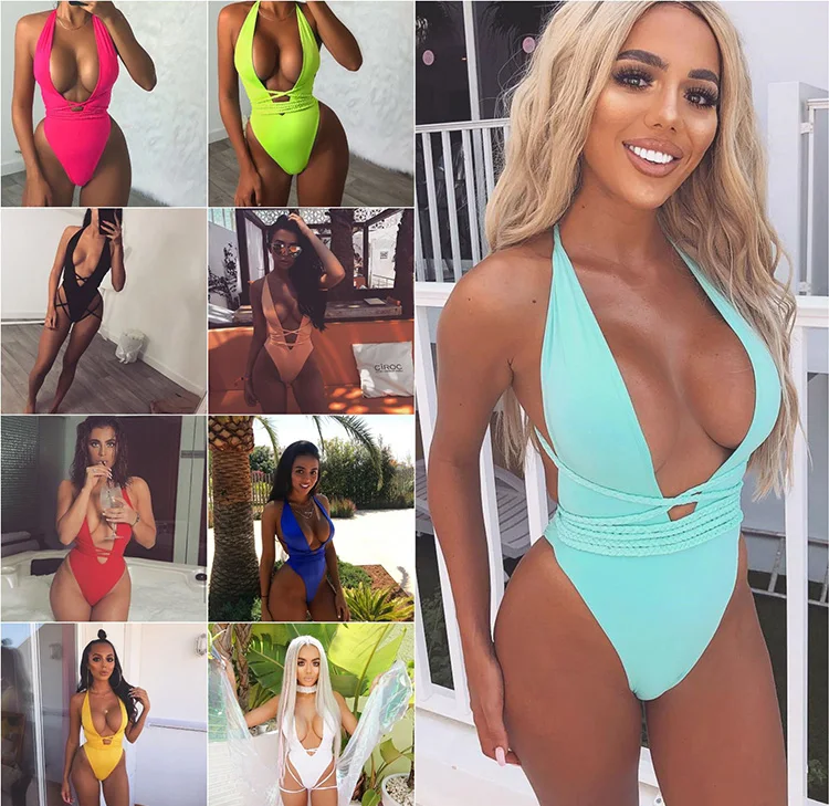 Цельные боди, бикини с лямкой на шее, однотонный купальный костюм, женский сексуальный купальник со шнуровкой, купальники, женские бикини