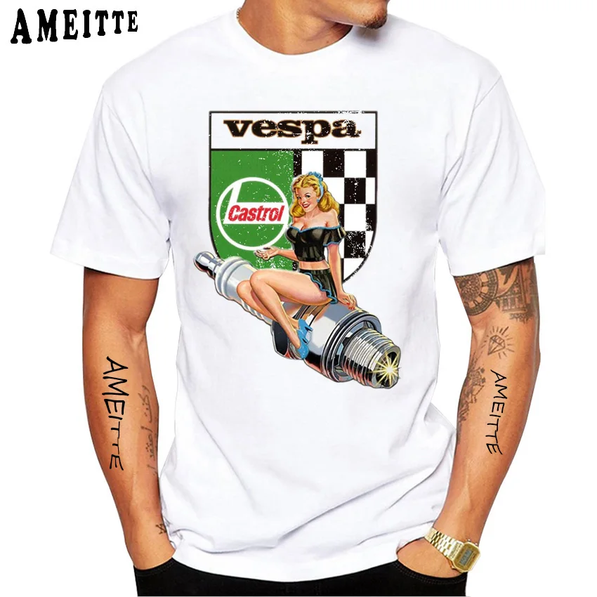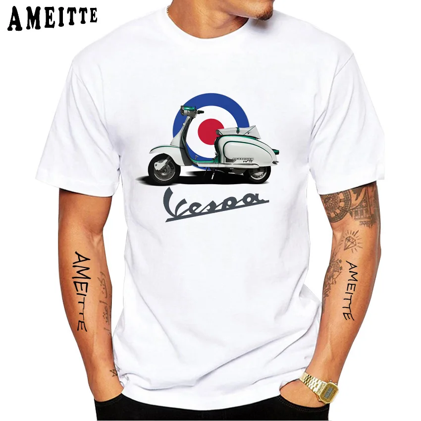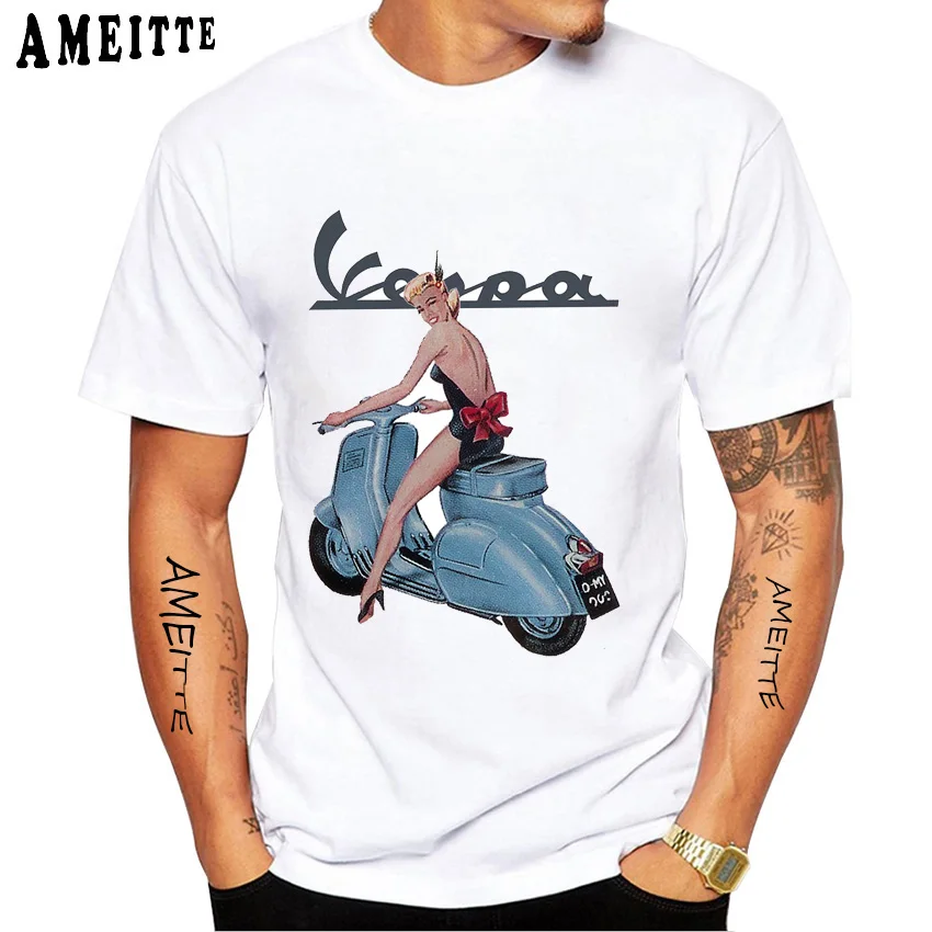 Винтажная Футболка Vespa для девочек и скутеров, новая летняя модная мужская Повседневная белая рубашка с коротким рукавом в стиле хип-хоп для мальчиков, Классические мужские футболки