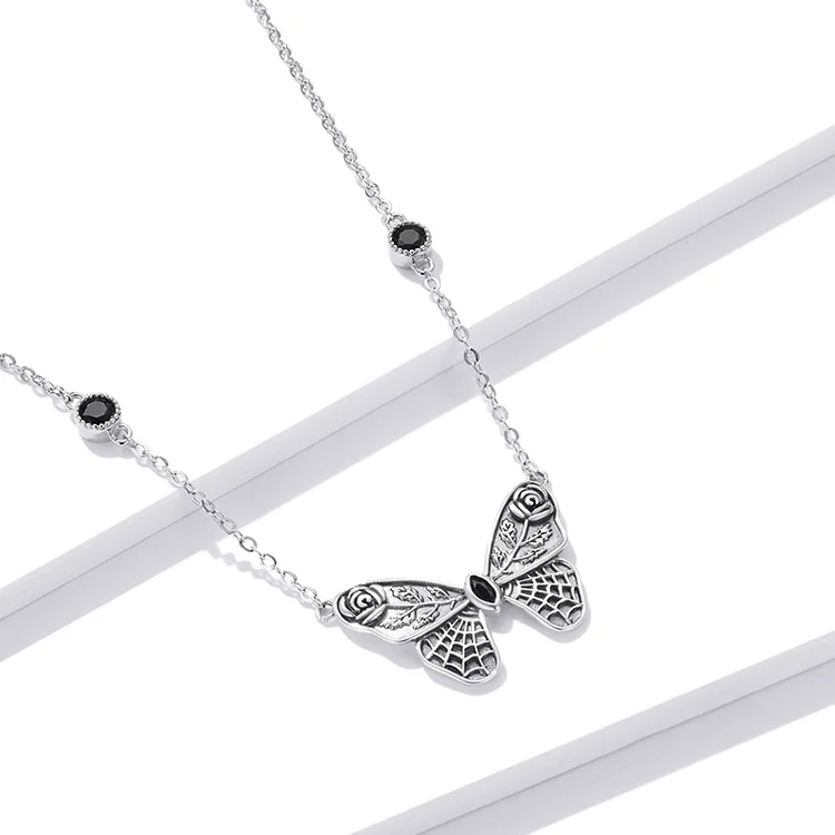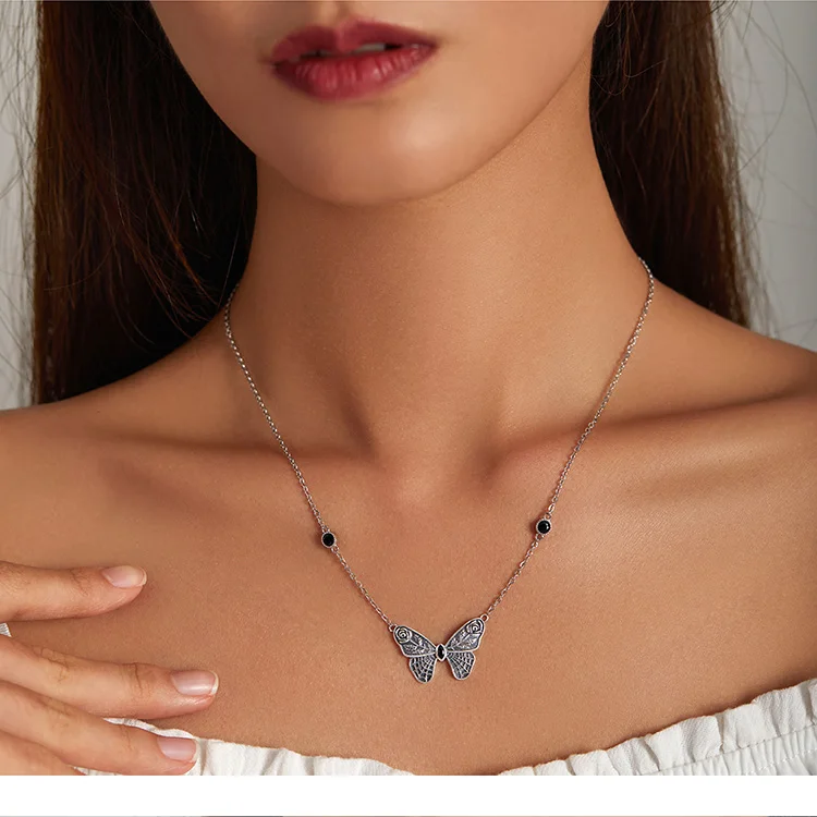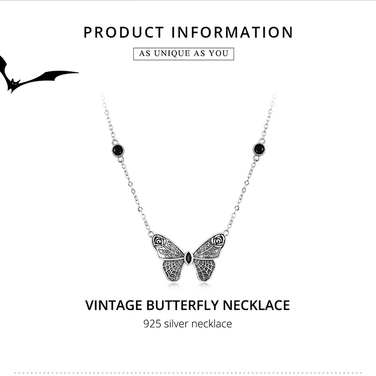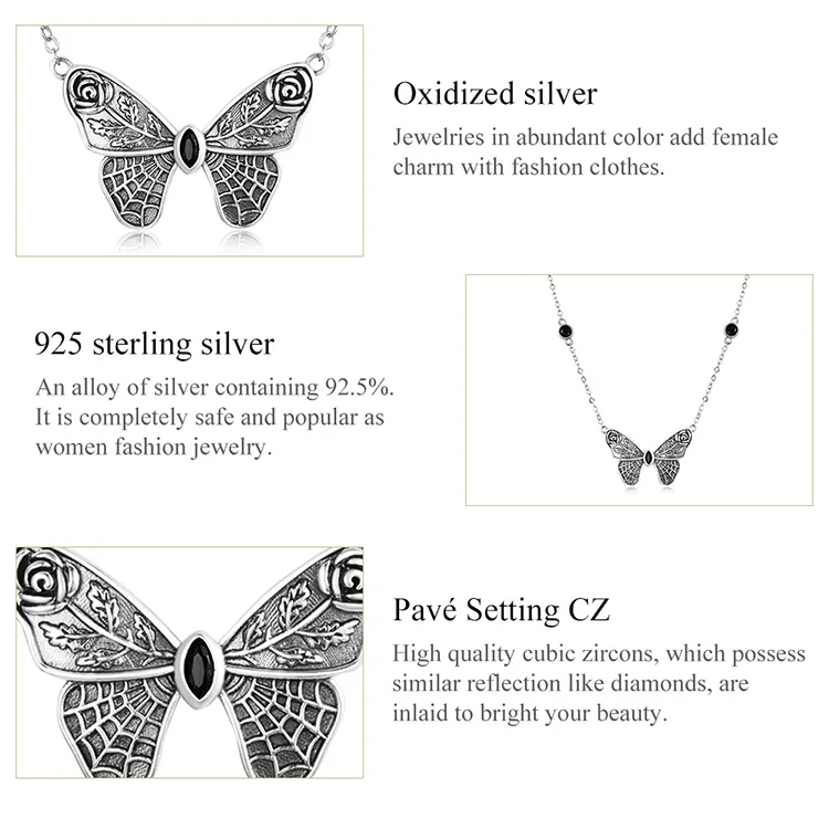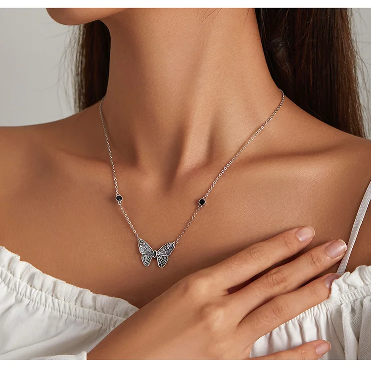 Женский винтажный чокер из серебра 925 пробы, с бабочкой и паутиной