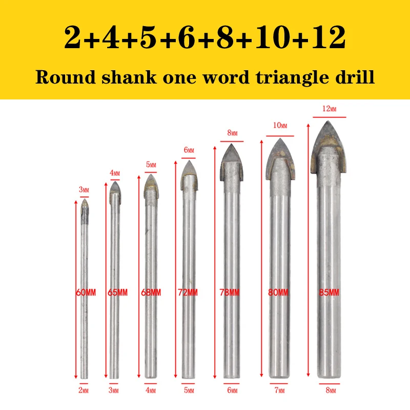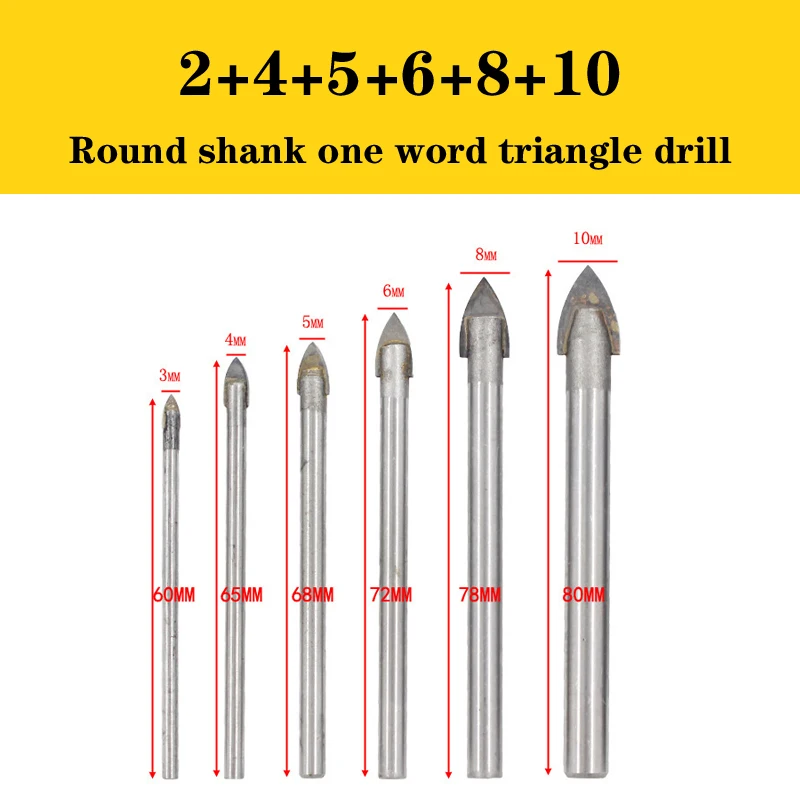 Набор сверл для плитки с шестигранным хвостовиком 3-12 мм, треугольные эффективные биты из твердого фарфора, стекла, керамики, бетона, сплава