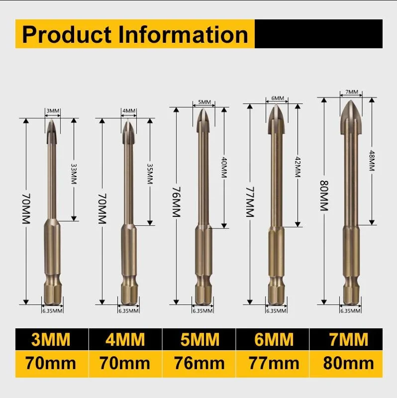 ➍Широкое использованиеПрофессиональные сверла для стекла и плитки обеспечивают плавное и точное сверление керамической плитки, мрамора, тонких железных пластин, зеркал и стекла. Не забудьте добавить воду или охлаждающую жидкость при сверлении.