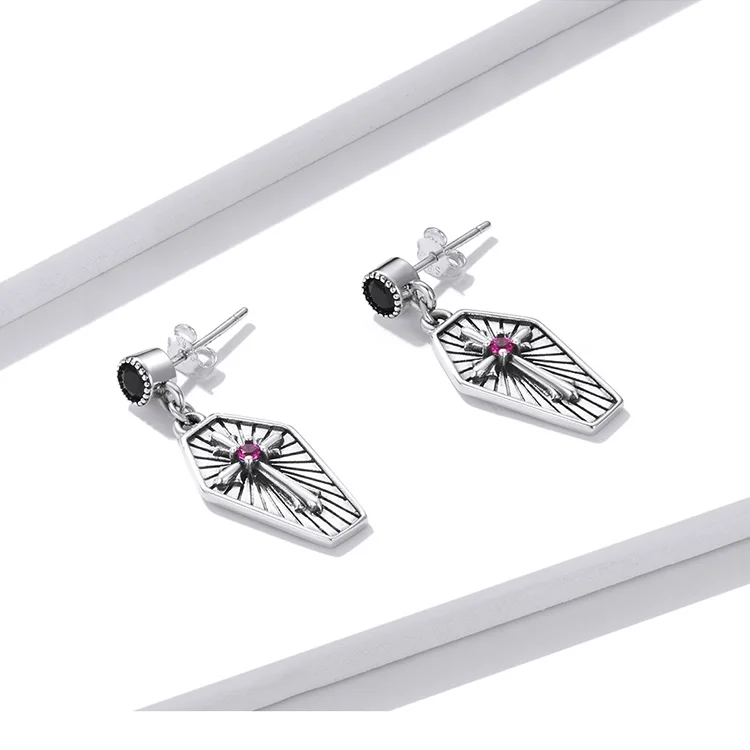 Женские серьги-гвоздики в виде таинственного Креста, из серебра 925 пробы