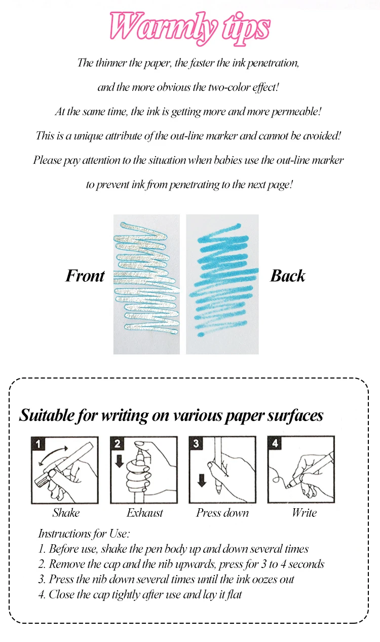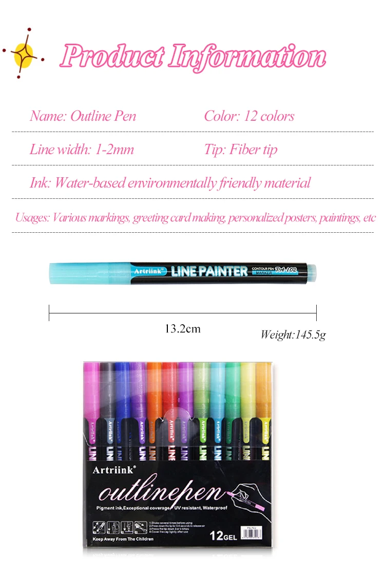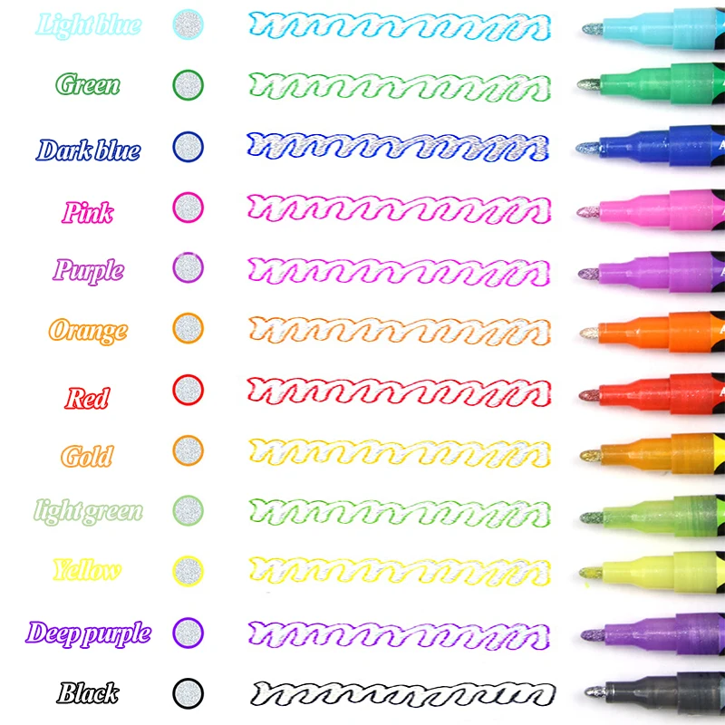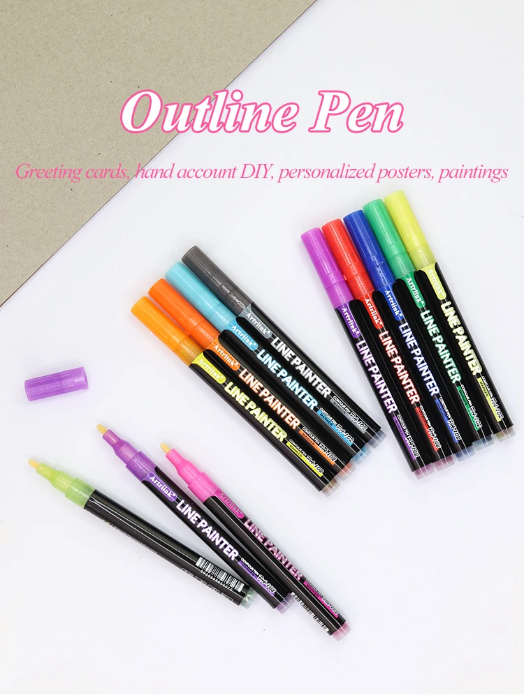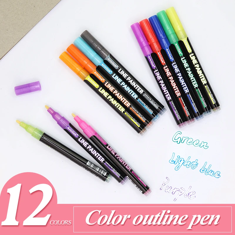Двойная линия 12 цветов маркеры контурная ручка с блестками для письма и рисования рисунок Ослепительная линия ручки для рисования для самостоятельной сборки карт плакатов рисование