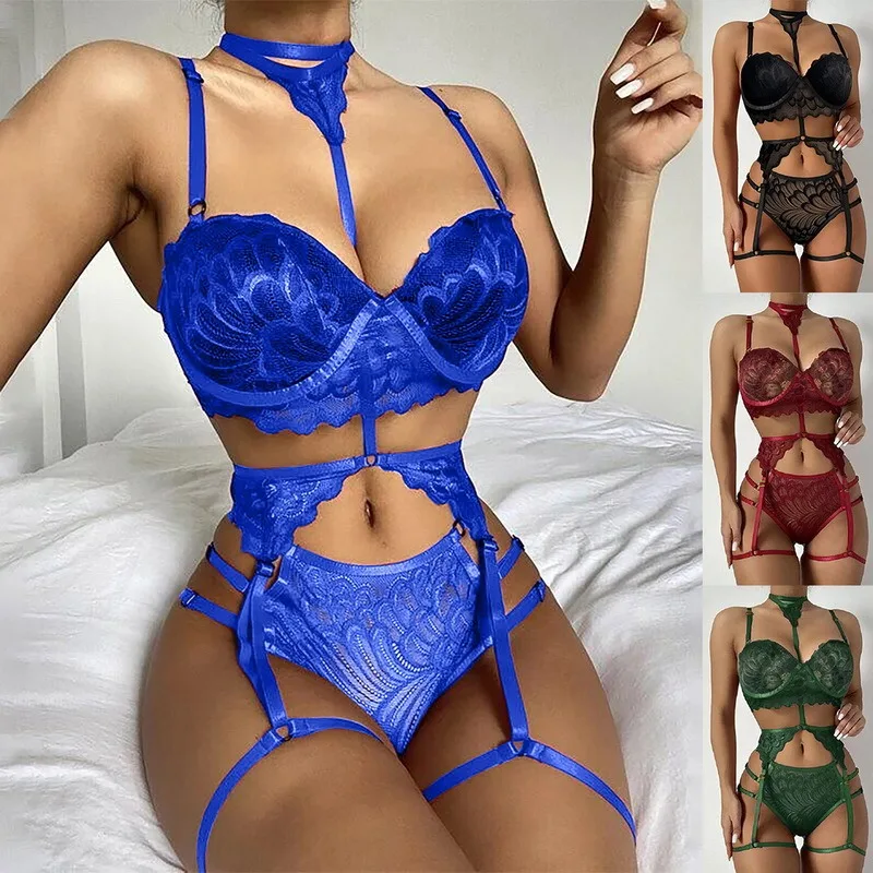 Женский сексуальный комплект нижнего белья с подвязками, женские бюстгальтеры пуш-ап с вышивкой, стринги, сексуальные трусики, женское нижнее белье 2021