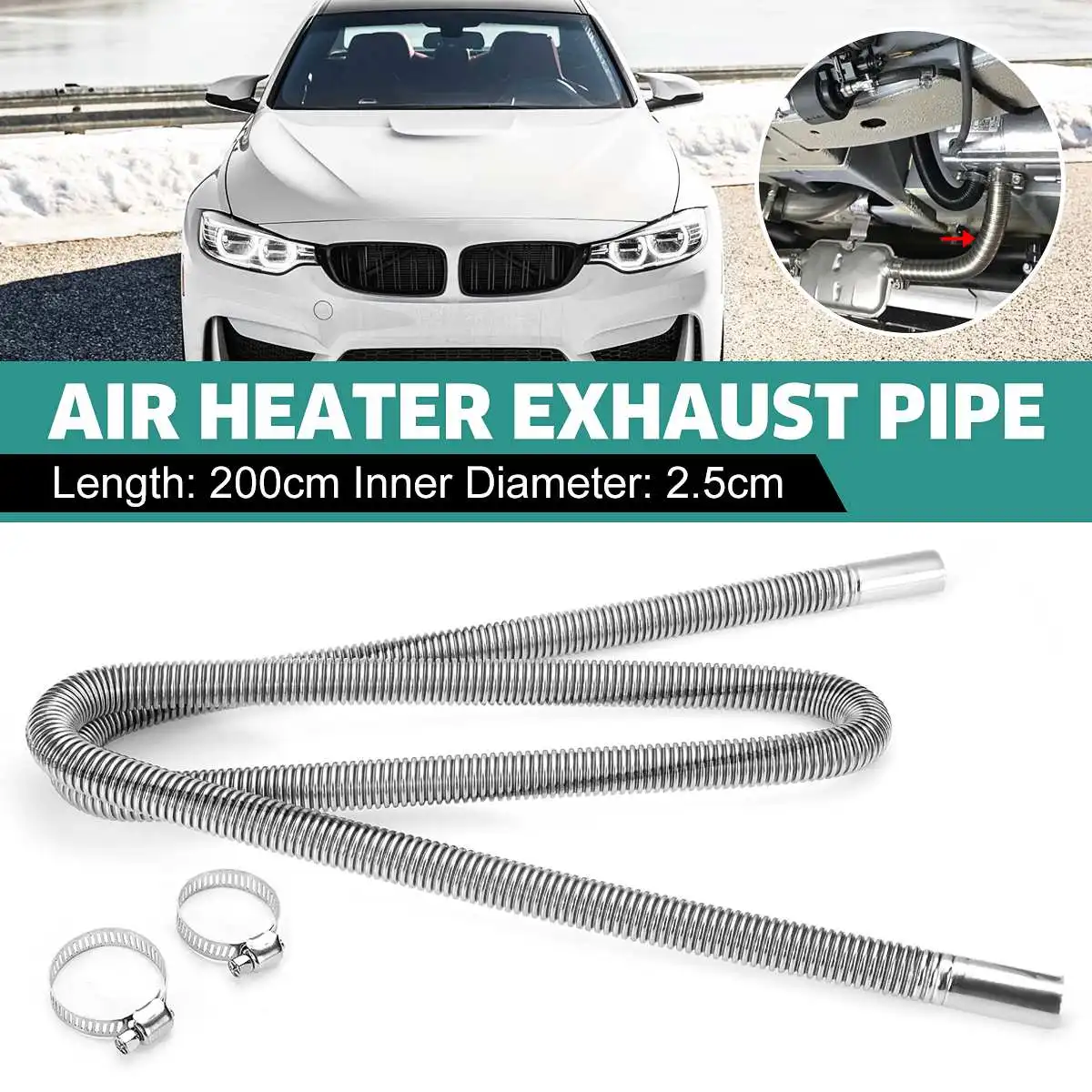 Спецификация:Название продукта: воздушный Нагреватель выхлопной трубыМатериал: нержавеющая стальЦвет: серебристыйДлина: 200 смВнутренняя Диаметр: 2,5 смЗажим Диаметр: 3,3 смПосылка включает в себя:1 х выхлопная труба нагревателя2 x зажимы