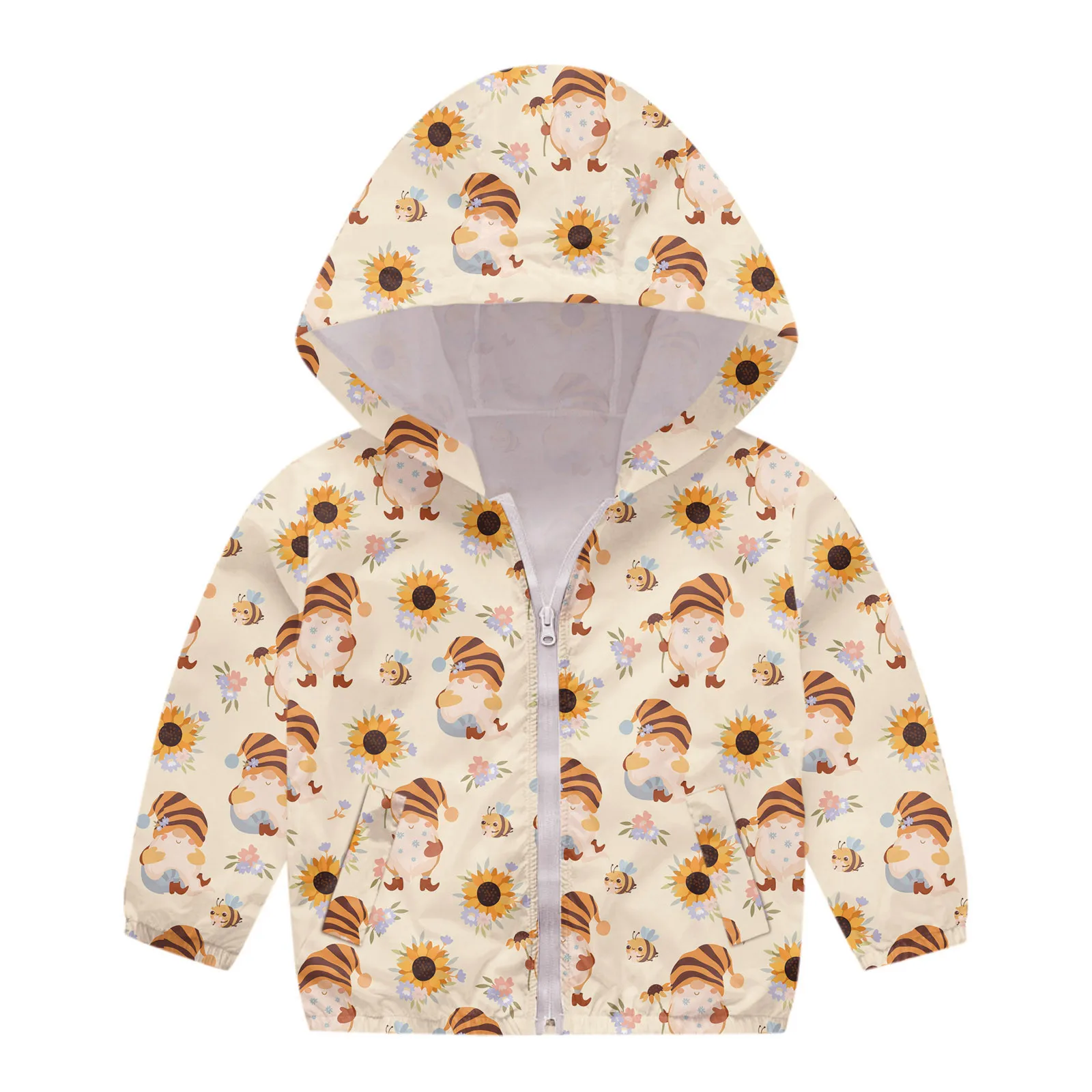 Осенняя куртка с принтом для маленьких мальчиков и девочек ветрозащитное пальто на молнии с капюшоном