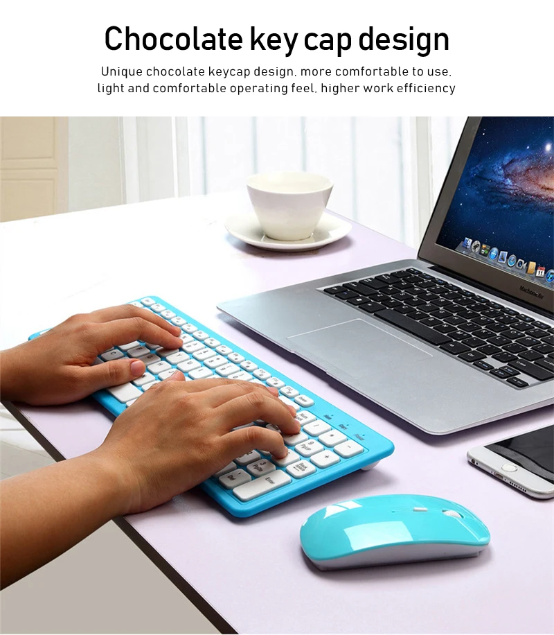 Беспроводная клавиатура, мышь, комбинированный набор, розовый, сини...