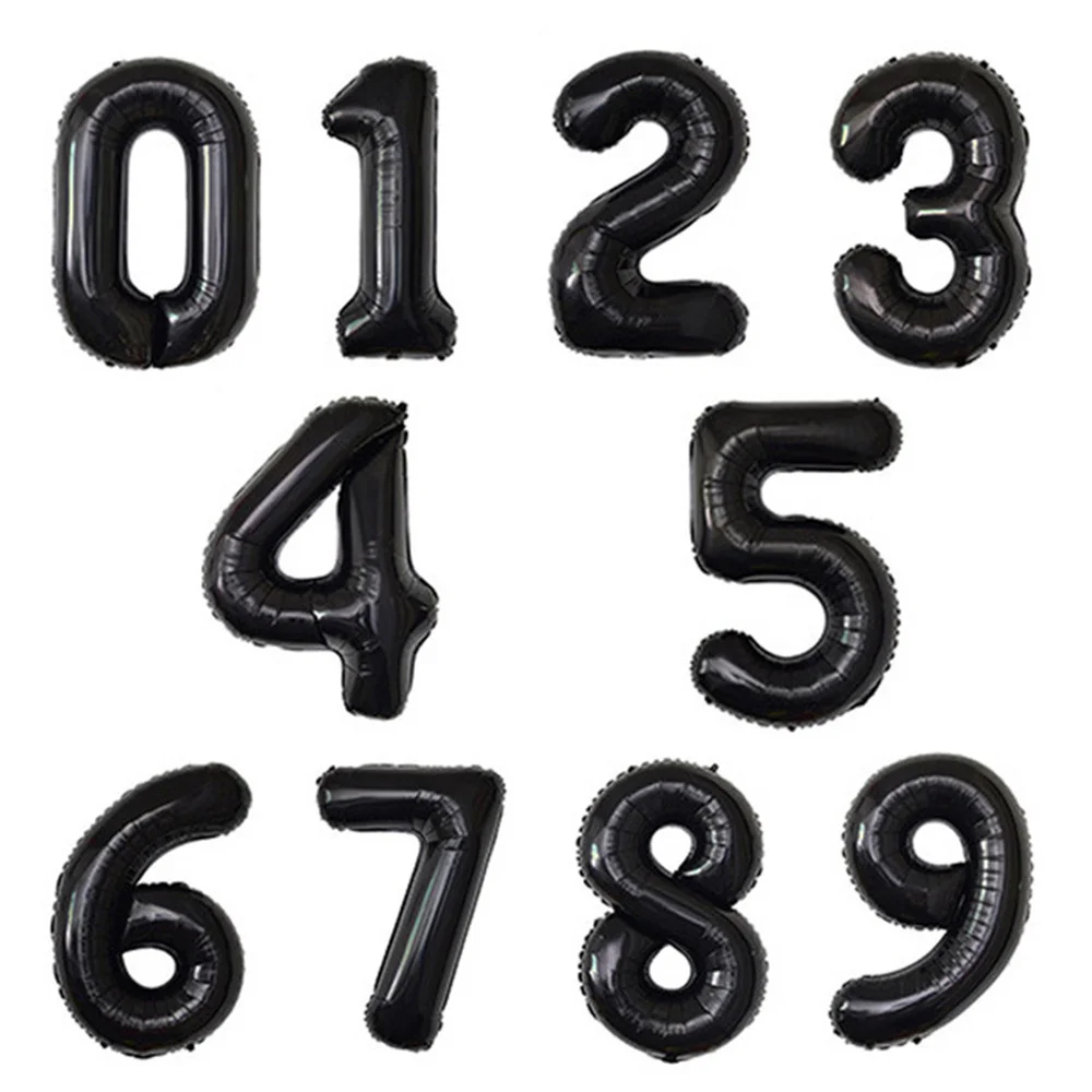 Большие черные фольгированные шары в виде цифр, шар для юбилея, гел...