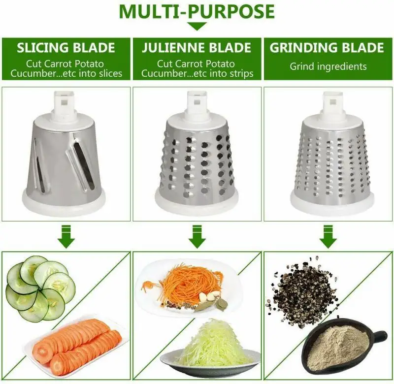 Поставляется с 3 блоками, чтобы обеспечить разницу в размерах продуктов питания
