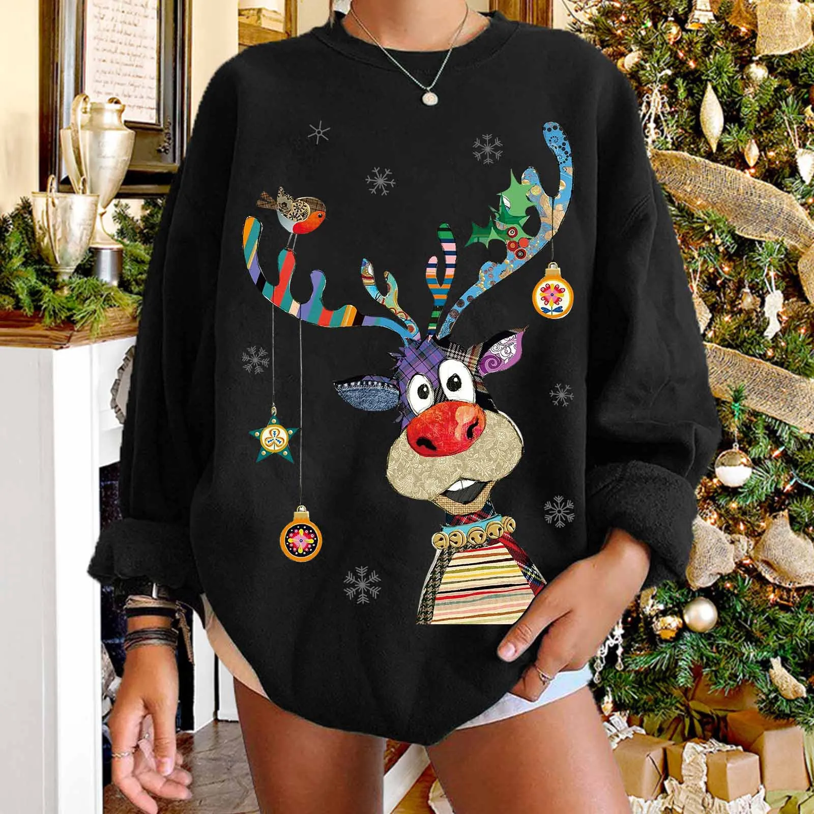 Свитер оверсайз, новинка 2021, рождественские свитера, Женская толстовка с принтом лося, топы, теплые женские пуловеры с длинным рукавом и рисунком из мультфильмов на Рождество