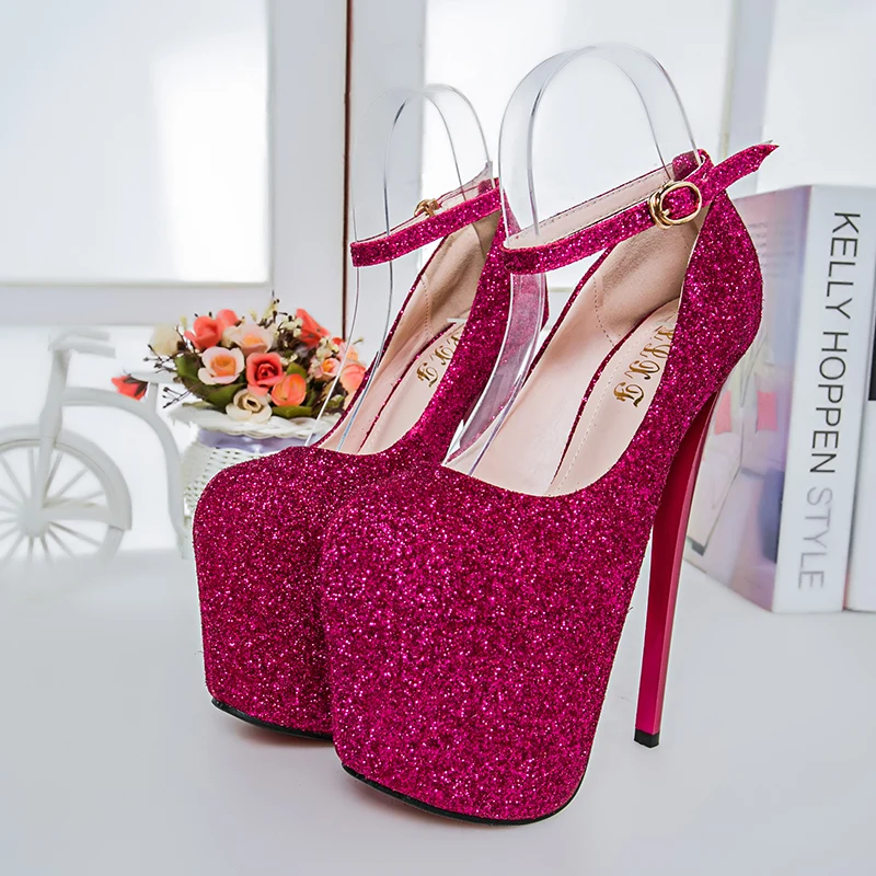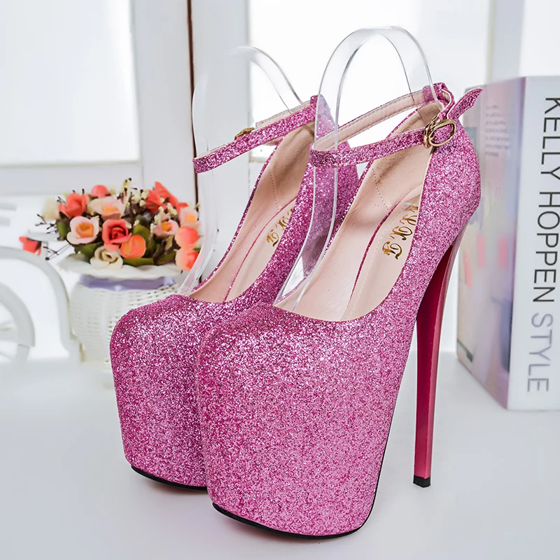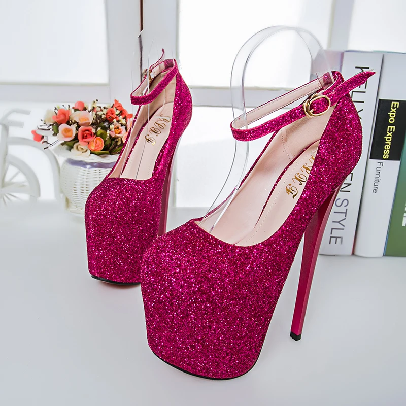 Сверкающие туфли на очень высоком каблуке и платформе, большие размеры 35-50