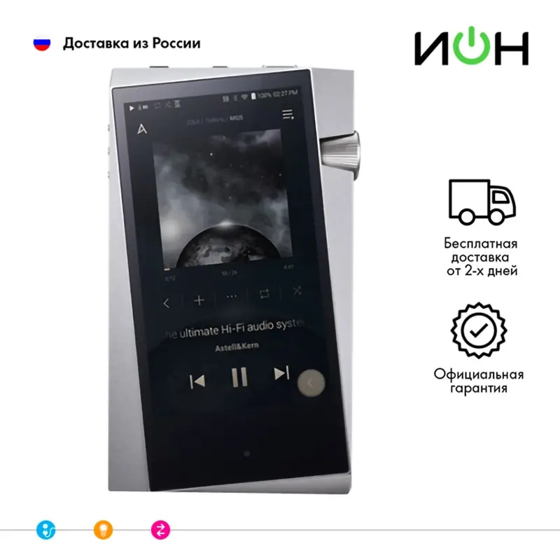Astell&Kern SR25 - Hi-Fi-плеер премиум-класса, предназначенный для всех любителей профессионального звука, может воспроизводить практически любой формат и разрешение - от MP3 и AAC до несжатых файлов PCM с 32 битами и частотой 384 Гц, а также файлы DSD256. Программное обеспечение SR25 основано на Android 9.0 с полностью оптимизированным интерфейсом, гарантирующем плавную работу системы. Алюминиевый корпус SR25 обеспечивает наилучшее качество звука, максимально возможно подавляя шумы. Присутствуют 2,5 мм и 3,5 мм выходы на наушники. Емкий аккумулятор обеспечивает до 21 часа активной работы.