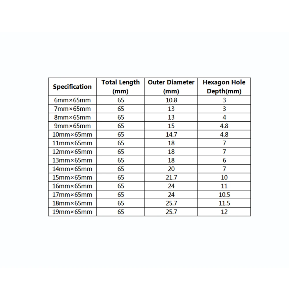 Размер (длина противоположной стороны шестигранника): 6 7 8 9 10 11 12 13 14 15 16 17 18 19 мм (6,35 мм)