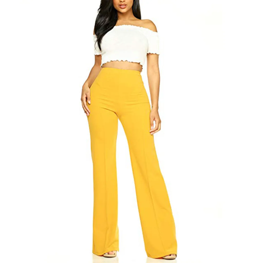 Брюки женские с высокой талией, Элегантные повседневные длинные шта...