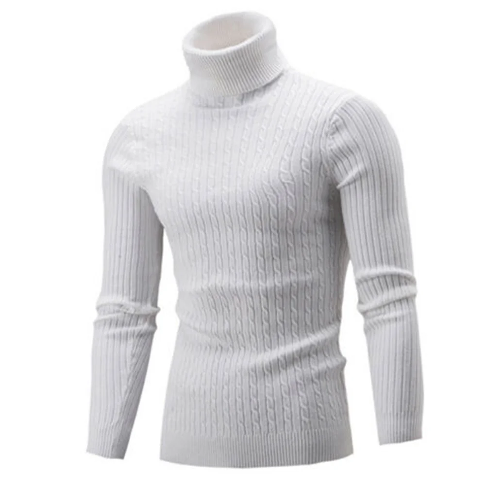 Повседневный мужской зимний однотонный трикотажный свитер с длинным рукавом и воротником-хомутом, Мужской пуловер, трикотажная одежда