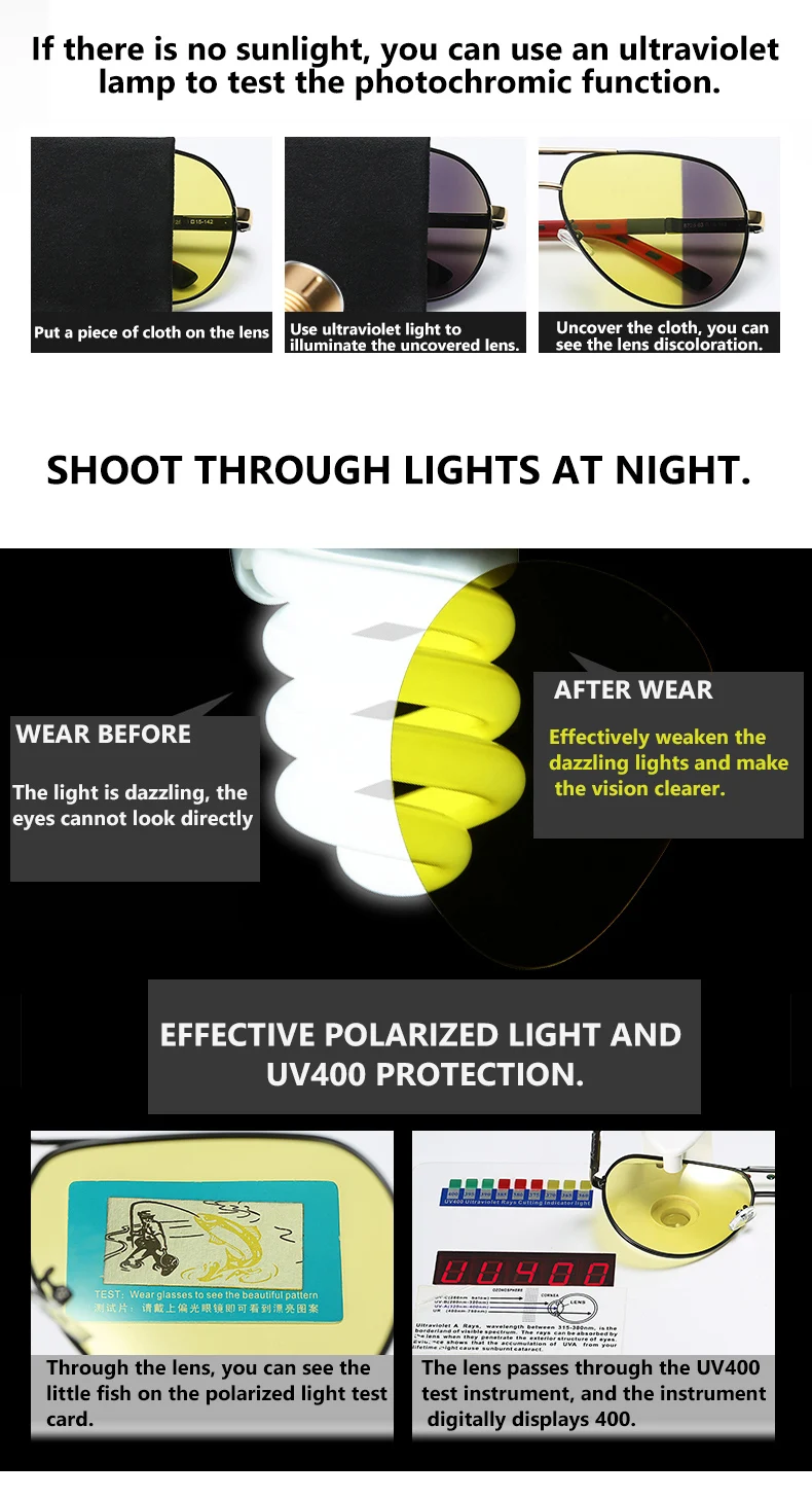 Мужские фотохромные солнцезащитные очки для вождения Anti-UV400, ви...
