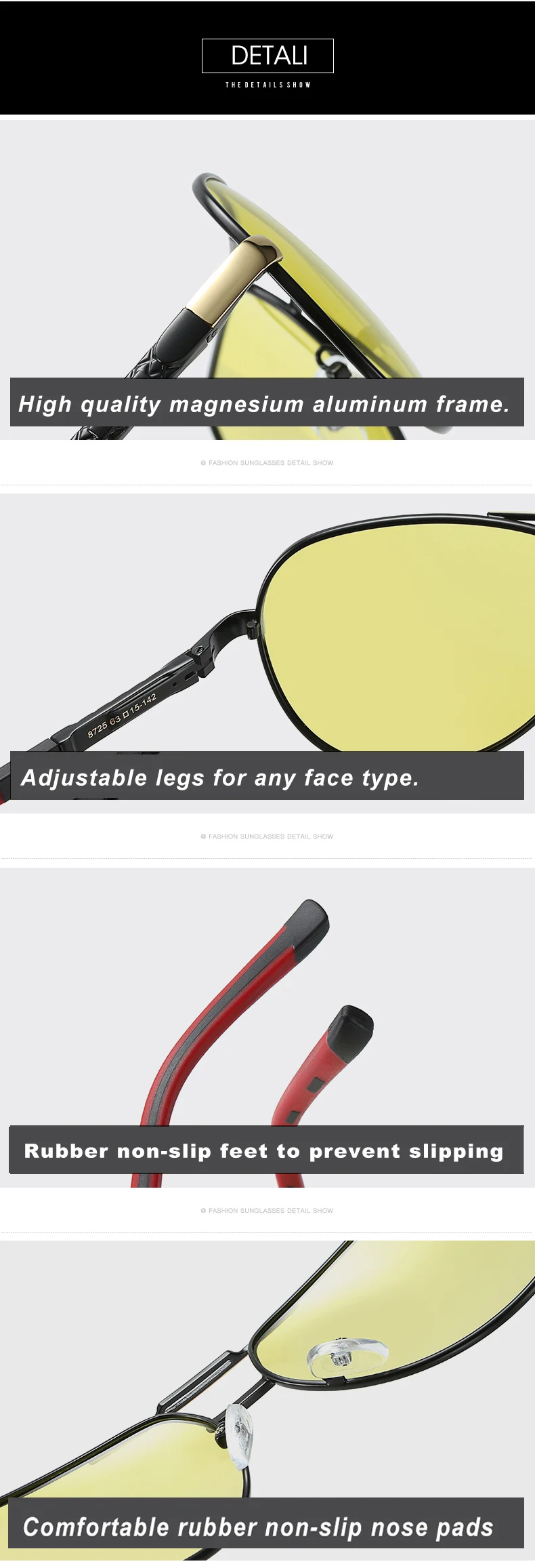 Очки солнцезащитные для ночного вождения, с оправой из алюминиево-м...