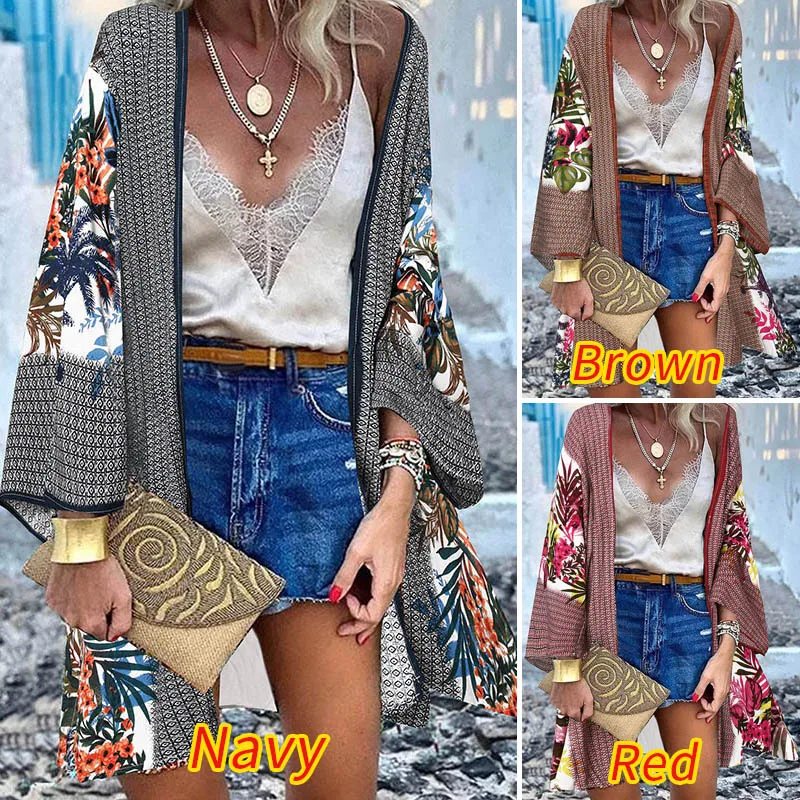 Кардиган с богемным принтом, женские летние блузки накидка-кимоно Z...